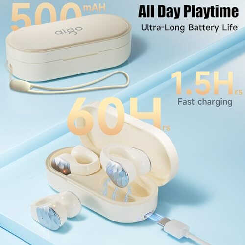Aigo Wireless Earphones - Open Ear Design, Waterproof, Wireless Charging, Sport Earbuds