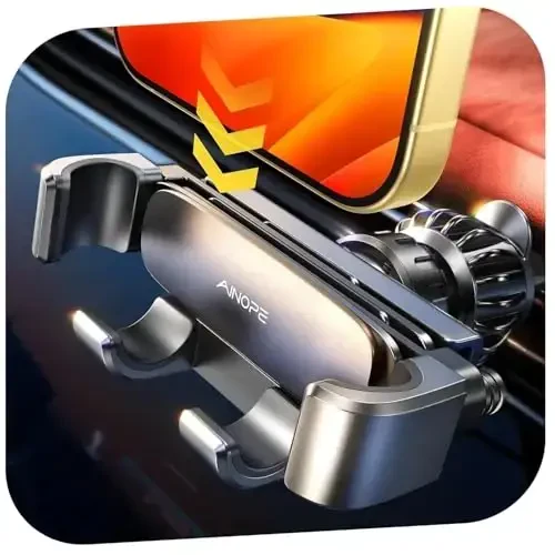 NOTE:Please read carefully before purchasing. 1. The length of clamp BETWEEN 0.5-1.14IN. This vent car phone holder NOT COMPATIBLE WITH CIRCLE AIR VENT. 2. We recommend using the smaller phone(≤4.7 IN) with phone case,Maximum thickness of device is 14MM(0.5 IN) 3. Please kindly know the car mount only supports VERTICAL MODE THE EASIEST OPERATION & JUST SLIDE IN AND GO: Just slide in your phone, car vent phone mount holder clamps the phone automatically by gravity and provide the easiest operation and a strong stable hold without button to press. Compaired to old air vent phone holder for car , you no longer free hands to spend too much time in looking down to place phone while reseting the navigation route. When getting off car in a hurry, just pick up phone and leave in seconds. UPGRADED AIR VENT HOOK: This car vent phone holder mount is designed as "Hook shape" and form "Three grasp points" which can firmly hook around the a/c vent for no slippage or movement. This car vent clip solving the market's common problem of falling forward and off the air vent constantly when going over bumps or turns. NOTE: THE LENGTH OF CLAMP BETWEEN 0.5-1.41IN. THIS VENT CAR PHONE HOLDER NOT COMPATIBLE WITH CIRCLE AIR VENT AUTO LOCK, NO MORE FALL: This gravity slide-in for iPhone car mount holder vent creatively features the Auto-lock arm-slots that stretch on the side can auto adjust to hold phone more firmly without fears of bumps. Compared to manual lock vent cellphone holder for car which being loose frequently, as its automatic rebound design you no need for secondary adjustment. Special curve of arms fit phone better. The phone was all-round protected by silicone rubber on the inside clamps. UNIVERSAL COMPATIBILITY: This universal vent cell phone holder car mount will firmly hold all the smart phones (4-7in) even with thicker case (≤14mm) compatible with iPhone 16 Pro Max iPhone 15 Plus 14 13 12 11 pro max /XR/X/8/7/6/5, Note 20 10/ Galaxy S25 S24 S23 S22 S21 S10+/ S9/ S8 /S7 /S6 and more. NOTE: WE RECOMMEND USING THE SMALLER PHONE(<4.7inch) WITH PHONE CASE, MAXIMUM THICKNESS OF DEVICE IS 14MM (0.5IN). NO BLOCK VENT & SAFER DRIVING: This vent car mount for iPhone with folding back structure is very neat and keep it small when not in use, only 1/2 card size and 3 inches away from the vent to still allow air flow. You can have a wider sight and adjust this gravity car phone mount vent up/down or left/right. NOTE: THE HORIZONTAL MODE IS NOT SUPPORTED. DOING RESPONSIBLY & SUSTAINABLY: As a responsible company, AINOPE operates sustainably, to high environmental and social standards. We continue to embed sustainability ever deeper in the way we do business – in our own operations and beyond, together with our suppliers. AINOPE cell phone car accessories phone holders for car vent comes with 7/24 after-sale service, so you can contact us when facing trouble . Our service team will always stand by your side.