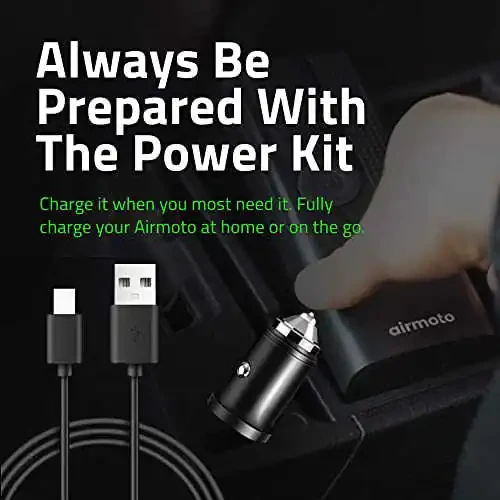 With the Airmoto and Power Kit Bundle Deal, you are purchasing Airmoto, a portable air compressor rechargeable at home and on the go, and a multi-pack including a charging kit. Ideal for inflating your car tires, motorcycle, and bicycle wirelessly, this compact and powerful air pump ensures you're always prepared. Made from high-quality materials, Airmoto offers precise inflation up to 120 PSI. With easy-to-use control buttons and an auto-shutoff feature, you can easily set the desired pressure and complete the inflation process smoothly. Airmoto includes a Schrader valve for cars, SUVs, motorcycles, and bicycles; a Presta valve for bicycles; and various adaptors for sporting equipment, cushions, and similar items. Please note that it is not designed for high-volume uses (such as air mattresses, wakeboards, or heavy-duty tires). Airmoto boasts many convenient features, including a large LCD screen, integrated LED flashlight, the ability to change pressure units, and a built-in area to store the air hose. Its powerful 2000 mAh rechargeable battery provides long-lasting use, and the quick-charge feature gets it ready to use again in a short time. The included carrying case allows for easy transport and storage of Airmoto. Making it an excellent gift option, Airmoto offers a safe and practical inflation solution. Please do not hesitate to contact us with any questions or concerns. Additionally, this package is backed by Asurion, meaning you will not pay extra for repairs, including parts, labor, and shipping. The plan is valid from the date of purchase and covers accidents such as drops, spills, and cracked screens that occur under normal use. It also covers malfunctions that occur after the manufacturer's warranty. The claim process is simple and fast: you can file a claim anytime online or by phone. Most claims are approved within minutes, and you will be sent an e-gift card for the purchase price of the product. In some cases, we will repair or replace your product. The plan must be purchased with the product or within 30 days of purchasing the product. Pre-existing conditions are excluded. Please see the "Product Guides and Documents" section for more information.