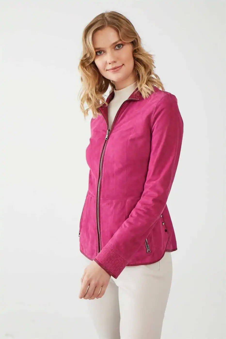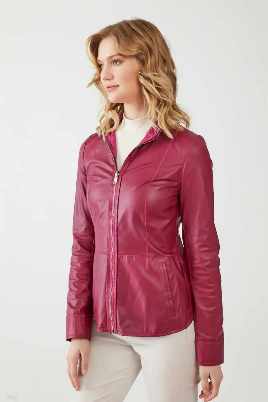 Aisha To'q Pushti Ayollar Ikki Tomonlama Charm Terisi Ko'ylagi o'ziga xos dizayni bilan uslub va qulaylikni birlashtiradi. Yumshoq charm terisi tuzilishi har qanday mavsumda sizning kiyimlaringizni to'ldirib beradi. Ko'ylagining ikki tomonlama dizayni turli xil uslublarni yaratish imkonini beradi. Bir tomoni klassik to'q pushti rangda bo'lsa, ikkinchi tomoni zamonaviy ko'rinishga ega. Har ikki tomonida ham amaliy cho'ntaklar mavjud bo'lib, ular sizning narsalaringizni xavfsiz saqlash imkonini beradi.