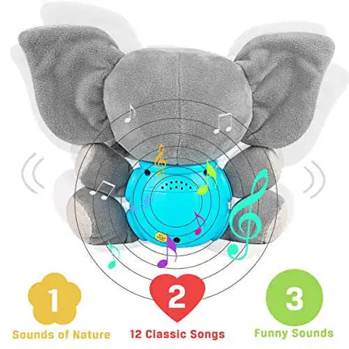 Игрушки для новорожденных Aitbay плюшевый слон музыкальные 0 3 6 9 12 месяцев, милые плюшевые животные светящиеся игрушки для новорожденных музыкальные игрушки для младенцев мальчиков и девочек малышей от 0 до 36 месяцев (серый)