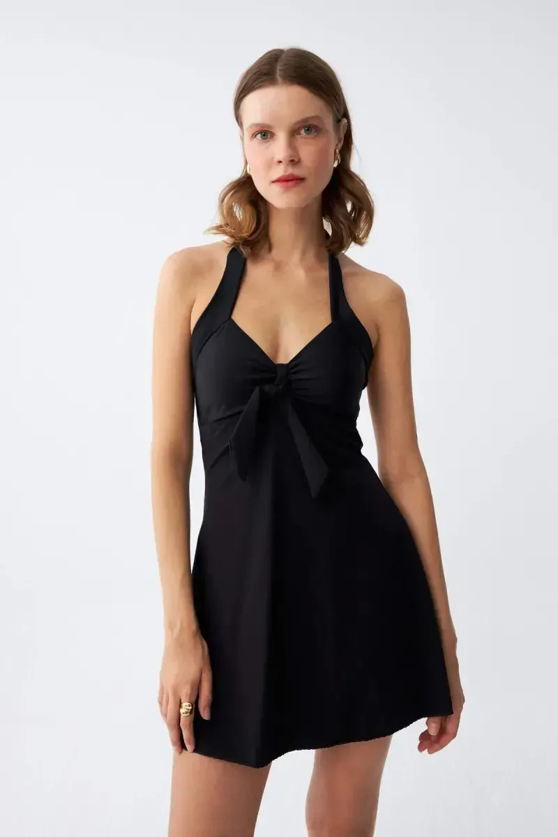 Akbeniz Ayollar Uchun Kamonli Qora Ko'ylak Mayo bilan plyajlar va hovuz bo'ylarida o'z uslubingizni namoyish etishga tayyor bo'ling! Ushbu maxsus dizayn zamonaviy chiziqlarni minimal nafislik bilan birlashtirib, har bir ayolning garderobida bo'lishi kerak bo'lgan buyumni taqdim etadi. Qoraning nafisligini o'zida mujassam etgan ushbu ko'ylak mayo nafaqat zamonaviy ko'rinishga ega, balki sizga kun bo'yi qulaylik va erkinlikni va'da qiladi.Ko'ylakning diqqatga sazovor detallaridan biri ko'krak o'rtasidagi ayollik bog'lash detalidir. Ushbu nafis teginish mayoga boshqacha havo beradi va ayni paytda dekolteni eng yaxshi tarzda ta'kidlaydi. Bo'yindan bog'langan sobit qalin tasma tuzilishi ham nafislikni, ham amaliylikni birlashtiradi. Tasmaarning mustahkamligi harakat erkinligingizni cheklamay, xavfsiz foydalanishni taklif qilsa, bo'yindan bog'lash detali ham uslubingizga o'ziga xos teginish qo'shadi.Akbeniz Ayollar Uchun Kamonli Qora Ko'ylak Mayo nafaqat dizayni bilan, balki taqdim etadigan qulayligi bilan ham ajralib turadi. Tanaga mos keladigan kesimi tufayli tana chiziqlarini eng yaxshi tarzda ochib beradi, qulay qolipi esa kun bo'yi erkin harakatlanishingizga imkon beradi. Yengil va tez quriydigan matosi esa dengizdan yoki hovuzdan chiqqandan so'ng tezda quriydi va sizga yoqimli tajriba taqdim etadi.Ushbu ko'ylak mayo, shuningdek, qo'llab-quvvatlovchi va yig'uvchi tuzilishi bilan ham ajralib turadi. Ko'kraklaringizga kerakli yordam berib, ularning tikroq va to'laroq ko'rinishiga yordam beradi. Yig'uvchi xususiyati tufayli esa, qorin bo'shlig'ini biroz shakllantirib, yanada jozibali ko'rinishga ega bo'lishingizga imkon beradi. Shu tarzda, plyajda yoki hovuzda o'zingizni yanada ishonchli va qulay his qilishingiz mumkin.Akbeniz Ayollar Uchun Kamonli Qora Ko'ylak Mayo bilan nafaqat zamonaviy, balki o'ziga ishongan va erkin ayol qiyofasini namoyish etishingiz mumkin. Quyoshda toblanib, suvdan bahramand bo'lib, plyaj kechalarida raqsga tushasizmi, ushbu ko'ylak mayo sizga har doim hamroh bo'ladi va uslubingizni to'ldiradi. Plyaj sumkangizning ajralmas qismiga aylanadigan ushbu maxsus dizayn bilan yozning lazzatidan to'liq bahramand bo'ling!