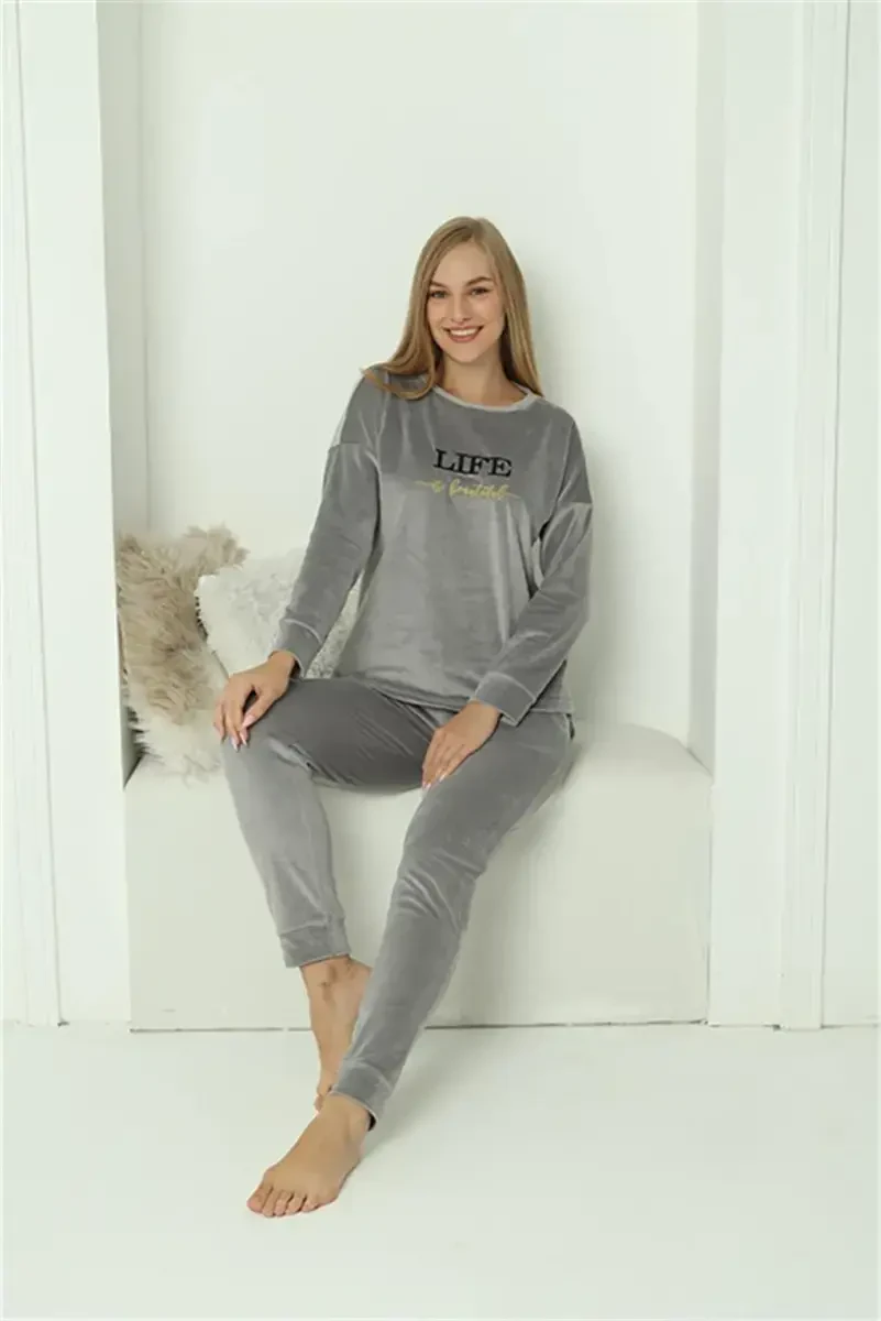 Ayollar baxmal kulrang pajama to'plami | Akbeniz qulayligi