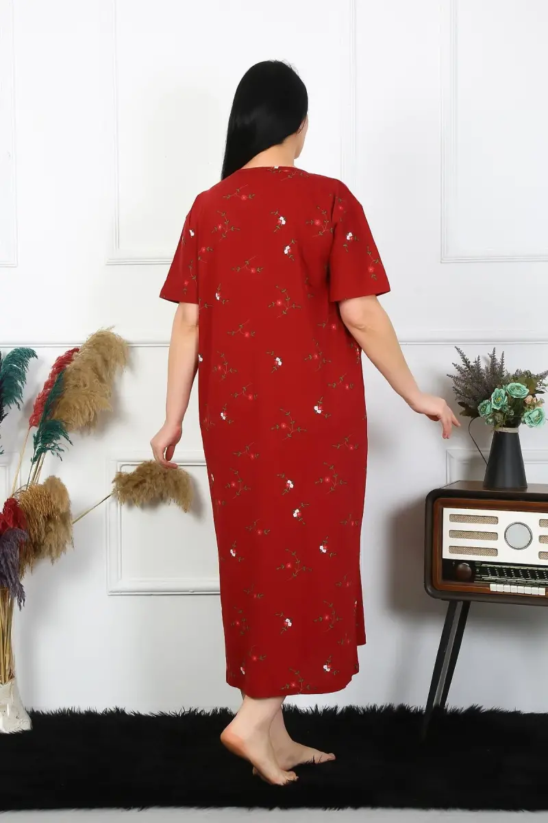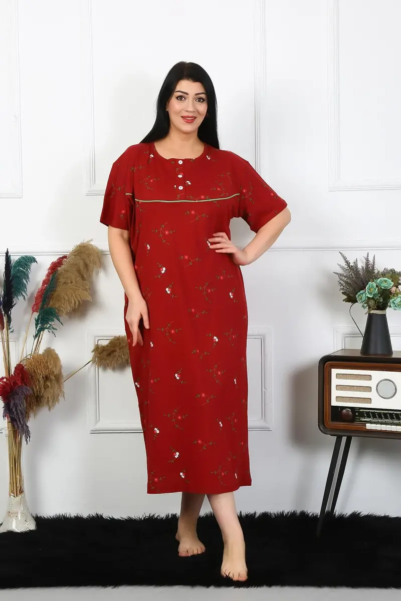 Akbeniz Ayollar Katta Oʻlcham Qisqa Yengli Bordo Ona Tungi Koʻylagi 1370