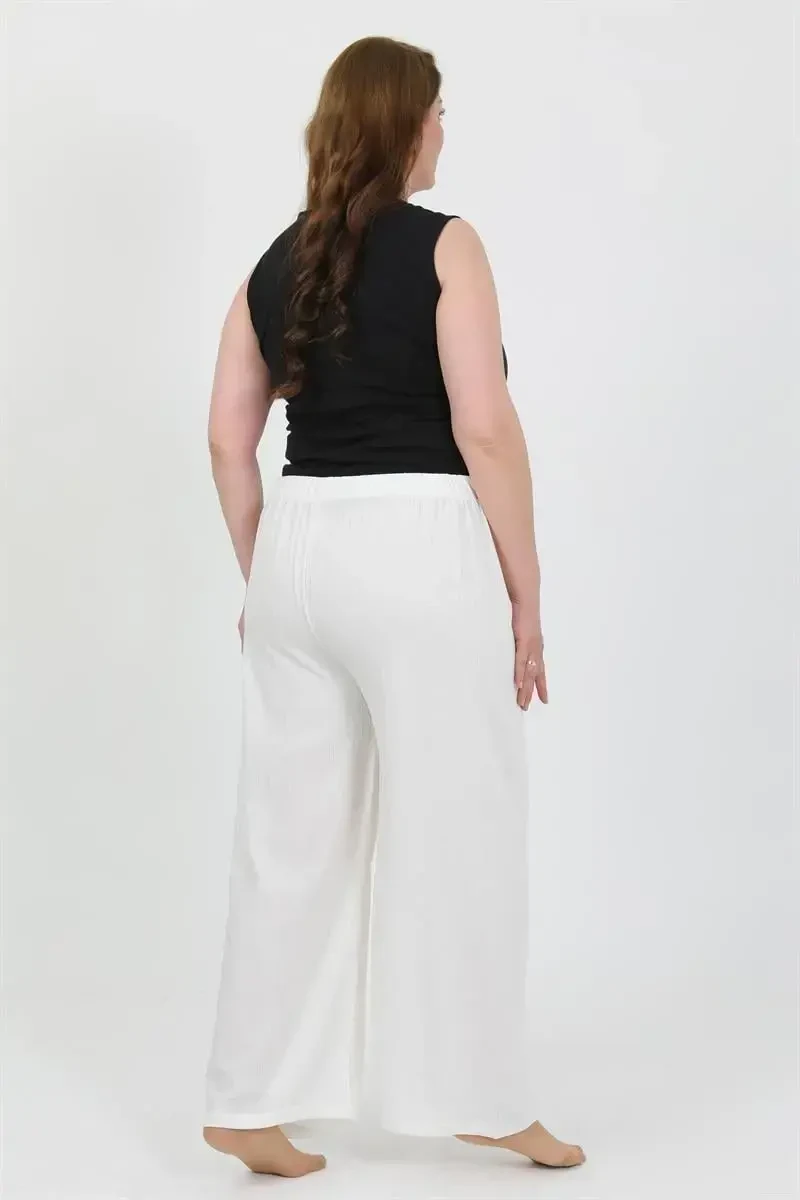 Katta o'lchamli shimlar, ayollar shimlari, burmali shimlar, oq shimlar, qulay shimlar, zamonaviy shimlar, Akbeniz, katta o'lchamli kiyimlar, ayollar kiyimlari, kundalik shimlar
