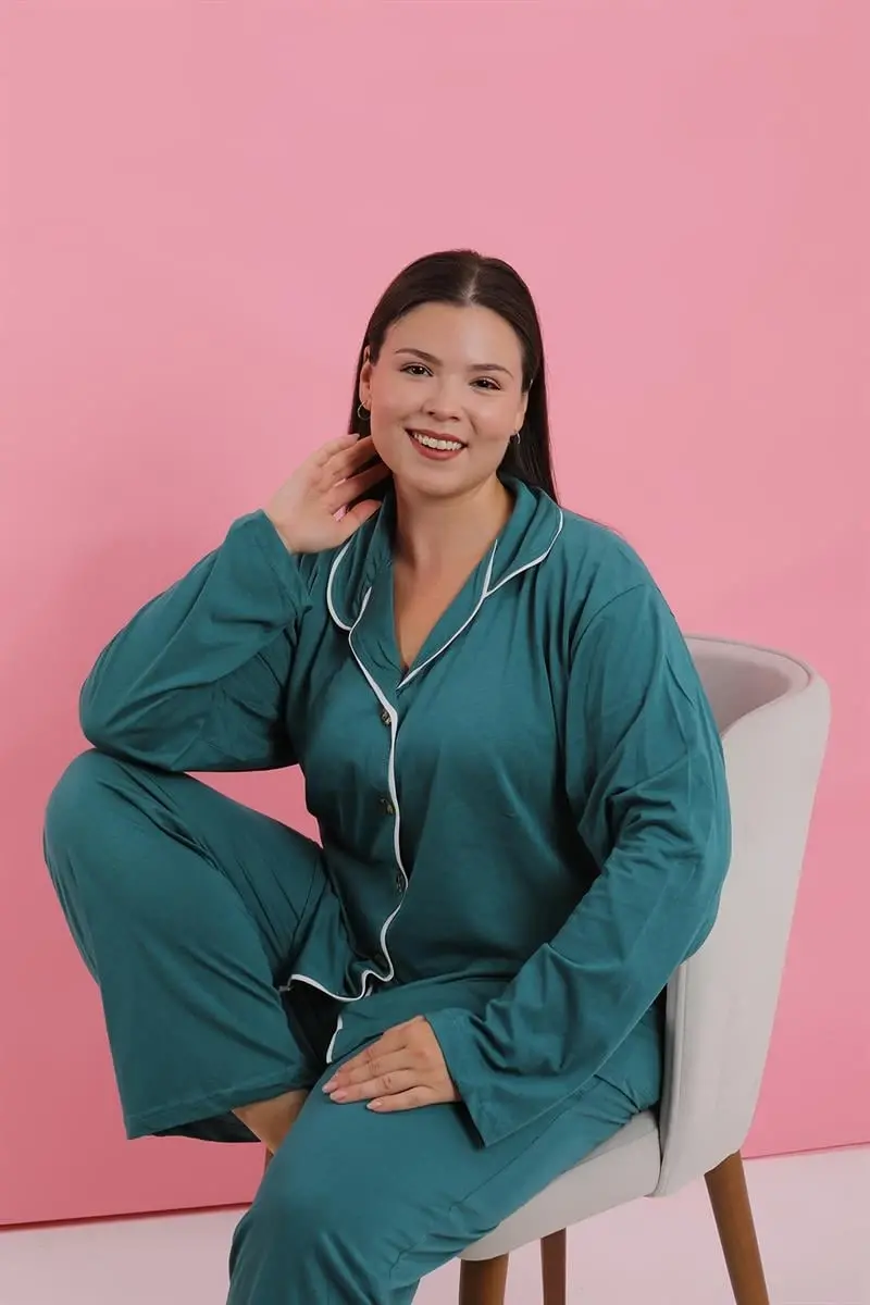 Katta o'lchamli pajama, ayollar pajama to'plami, neft rangi pajama, tugmali pajama, qulay pajama, zamonaviy pajama, uyqu kiyimi, uy kiyimi, qulay pajama, Akbeniz pajama