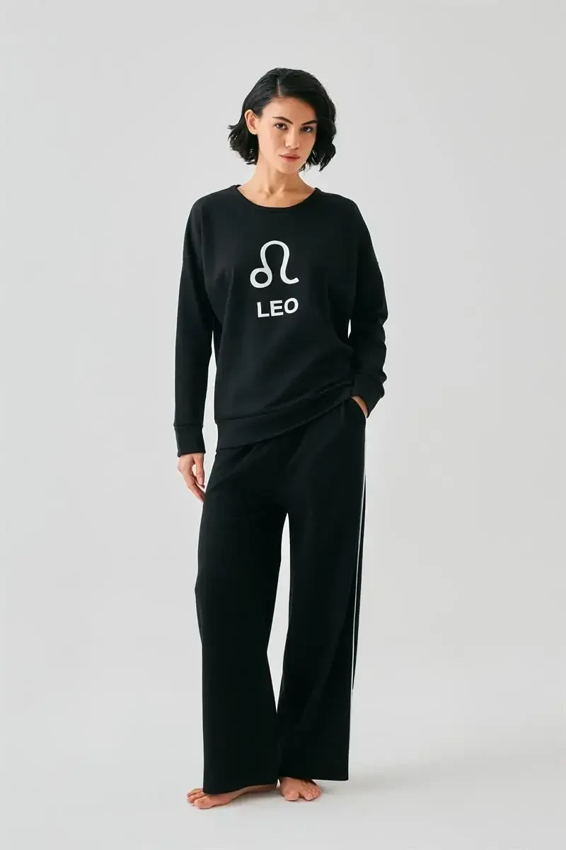 Arslon burji qora sport kostyumi | Ayollar uchun keng uy kiyimi