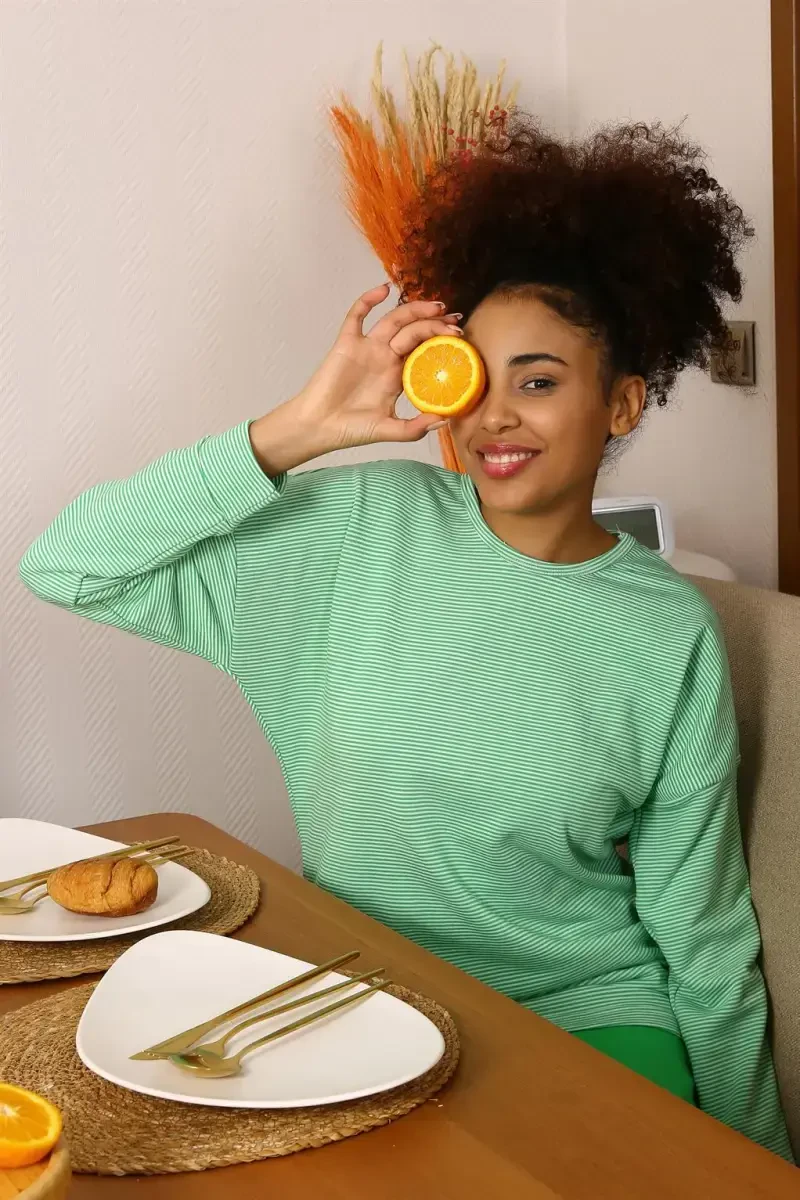 Akbeniz Ayollar Uzun Qo'l 3 Ipdan Trikotaj Pijama To'plami 4191, uy kiyimida qulaylik va nafosatni birlashtirgan noyob tanlovdir. Og'ir kundan keyin dam olish va hordiq chiqarish uchun mo'ljallangan bu pijama to'plami, teringizga mayin tegadigan yumshoq 3 ipli trikotaj matosi bilan kun bo'yi davom etadigan qulaylikni taqdim etadi. Bundan tashqari, matoning nafas oladigan tuzilishi tufayli terlash muammosini minimal darajaga tushirib, teringizning sog'lom bo'lishiga yordam beradi. Uzun yengli yuqori va pastki qismlardan iborat bu to'plam, ayniqsa salqin havoda sizni issiq tutib, qulay uyqu tajribasini taqdim etadi. Akbeniz tomonidan sinchkovlik bilan tayyorlangan bu pijama to'plami, nafaqat uyqu uchun, balki uyda dam olayotganda, kitob o'qiyotganda yoki televizor ko'rayotganda ham foydalanishingiz mumkin bo'lgan zamonaviy alternatividir. Zamonaviy va nafis dizayni bilan uy kiyimida ham o'z uslubingizga ega bo'lishingizni ta'minlaydi. Pijama to'plamining qulay kesimi harakat erkinligingizni cheklamay, kun bo'yi qulaylikni taqdim etadi. Yuqori sifatli materiali tufayli uzoq umr ko'rishni va'da qiladi, shuningdek, oson yuviladigan va dazmollanadigan xususiyati tufayli amaliy foydalanish imkoniyatini taqdim etadi. Akbeniz Ayollar Uzun Qo'l 3 Ipdan Trikotaj Pijama To'plami 4191, o'zingiz yoki yaqinlaringiz uchun ajoyib sovg'a bo'lishi mumkin. Tug'ilgan kun, Yangi yil yoki boshqa maxsus kun bo'lsin, ushbu zamonaviy va qulay pijama to'plami bilan yaqinlaringizga unutilmas sovg'a berishingiz mumkin. Uyda o'tkazgan vaqtingizni yanada yoqimli va qulay qilish uchun Akbeniz sifatiga ishonishingiz mumkin. Unutmang, yaxshi uyqu va qulay uy hayoti umumiy hayot sifatini oshirishning eng muhim usullaridan biridir. Akbeniz pijama to'plami bilan ham zamonaviy ko'rinasiz, ham kun bo'yi qulaylikdan bahramand bo'lasiz. Ushbu pijama to'plami shkafingizning ajralmas qismiga aylanishga nomzoddir. Hozir buyurtma bering va Akbeniz sifatini sinab ko'ring!