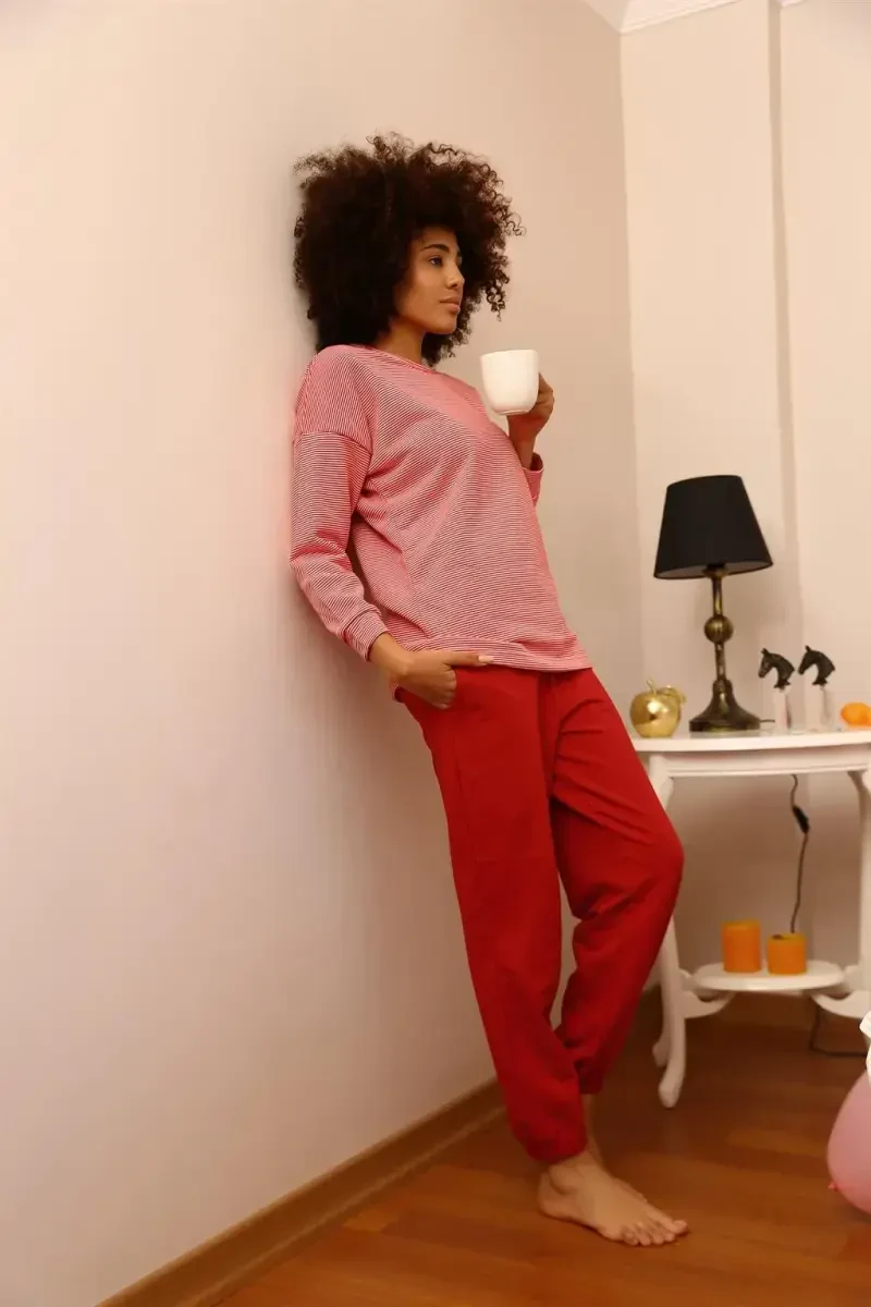 Akbeniz Ayollar uzun qo'lli 3 ipli trikotajdan tikilgan pajama to'plami 4184 bilan qulaylik va nafosatni birga his eting. 100% paxtadan tayyorlangan ushbu pajama to'plami teringizga nafas berish bilan birga yumshoq tuzilishi bilan qulay uyquni ta'minlaydi. Kun bo'yi charchoqni unutib, o'zingizni maxsus his etishingizga imkon beradi. Uch ipli trikotaj mato pijamaga chidamlilik va uzoq umr berish bilan birga, issiq tutish xususiyati tufayli sovuq havoda ham ideal tanlovdir.Akbeniz ayollarning qulayligi va nafosatini birinchi o'ringa qo'ygan holda ushbu pajama to'plamini yaratdi va uyda o'tkazgan vaqtingizni yanada yoqimli qilishni maqsad qiladi. Pajama to'plamining yuqori qismi uzun qo'lli va qulay bichimga ega, shuning uchun harakat erkinligingizni cheklamaydi. Pastki qismi esa elastik belbog'i tufayli tanangizga mukammal mos tushadi va kun bo'yi qulaylikni ta'minlaydi. Uyda dam olayotganda ham, mehmonlarni qabul qilayotganda ham, Akbeniz pajama to'plami har doim o'zingizni nafis va qulay his qilishingizga imkon beradi.Akbeniz Ayollar uzun qo'lli 3 ipli trikotajdan tikilgan pajama to'plami, har xil o'lchamdagi variantlari bilan har qanday tana tuzilishiga mos keladigan alternativani taklif etadi. Modeldagi M o'lcham mahsulotning umumiy ko'rinishi va bichimi haqida sizga tasavvur berishi mumkin. O'lchamlar jadvalidan o'z o'lchamingizga mos keladigan o'lchamni tanlab, o'zingizga mos keladigan pajama to'plamiga ega bo'lishingiz mumkin. Akbeniz sifat va mijozlar ehtiyojini qondirishni birinchi o'ringa qo'ygan holda, har bir mahsulotni ehtiyotkorlik bilan loyihalashtiradi va ishlab chiqaradi. Ushbu pajama to'plami ham Akbeniz sifati va nafosatining bir ko'rinishidir. Qulaylikni qadrlaydigan, nafisligi bilan ham ko'zni qamashtirmoqchi bo'lgan ayollar uchun ideal tanlovdir. Hozir buyurtma bering va Akbeniz qulayligini uyingizda his eting!