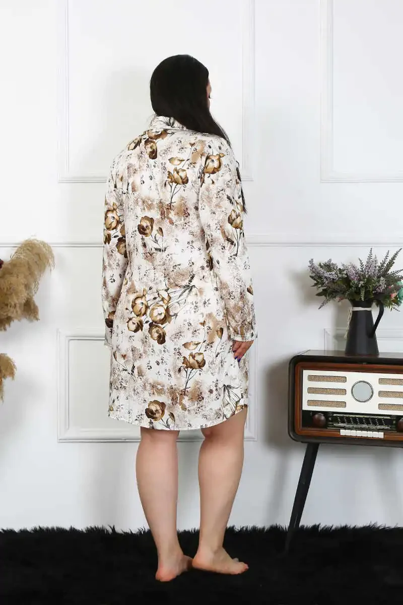 **Akbeniz Ayollar Katta O'lchamli Paxta Tugmali Uzun Qollari va Qaymoqli Tunika Tungi Ko'ylagi 12205**