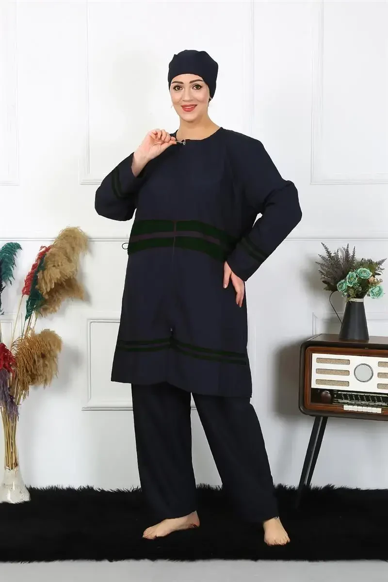 большой размер скромный купальник, скромный купальник, купальник большого размера, скромный, купальник, акбениз, темно-синий купальник, большой размер, водонепроницаемый купальник, быстросохнущий купальник