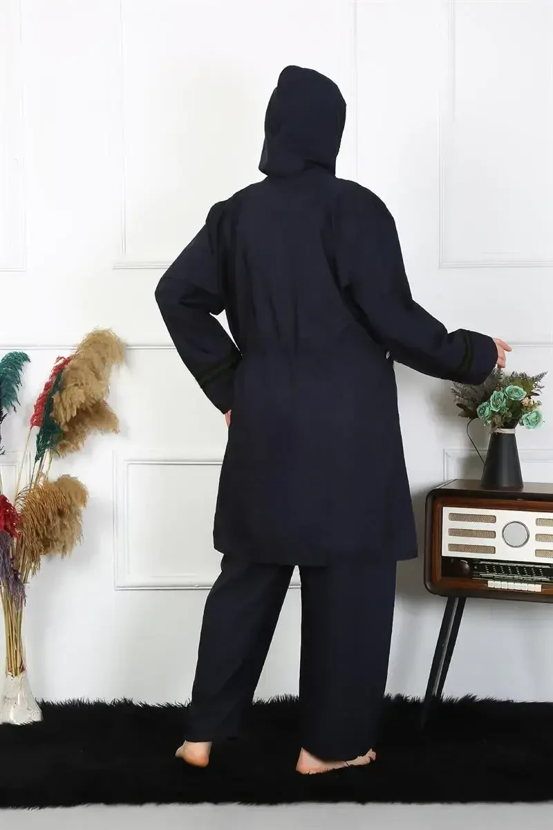 Большой Размер Скромный Купальник | Акбениз Темно-синий Купальник Размер 60-66 | Водонепроницаемый, Быстросохнущий