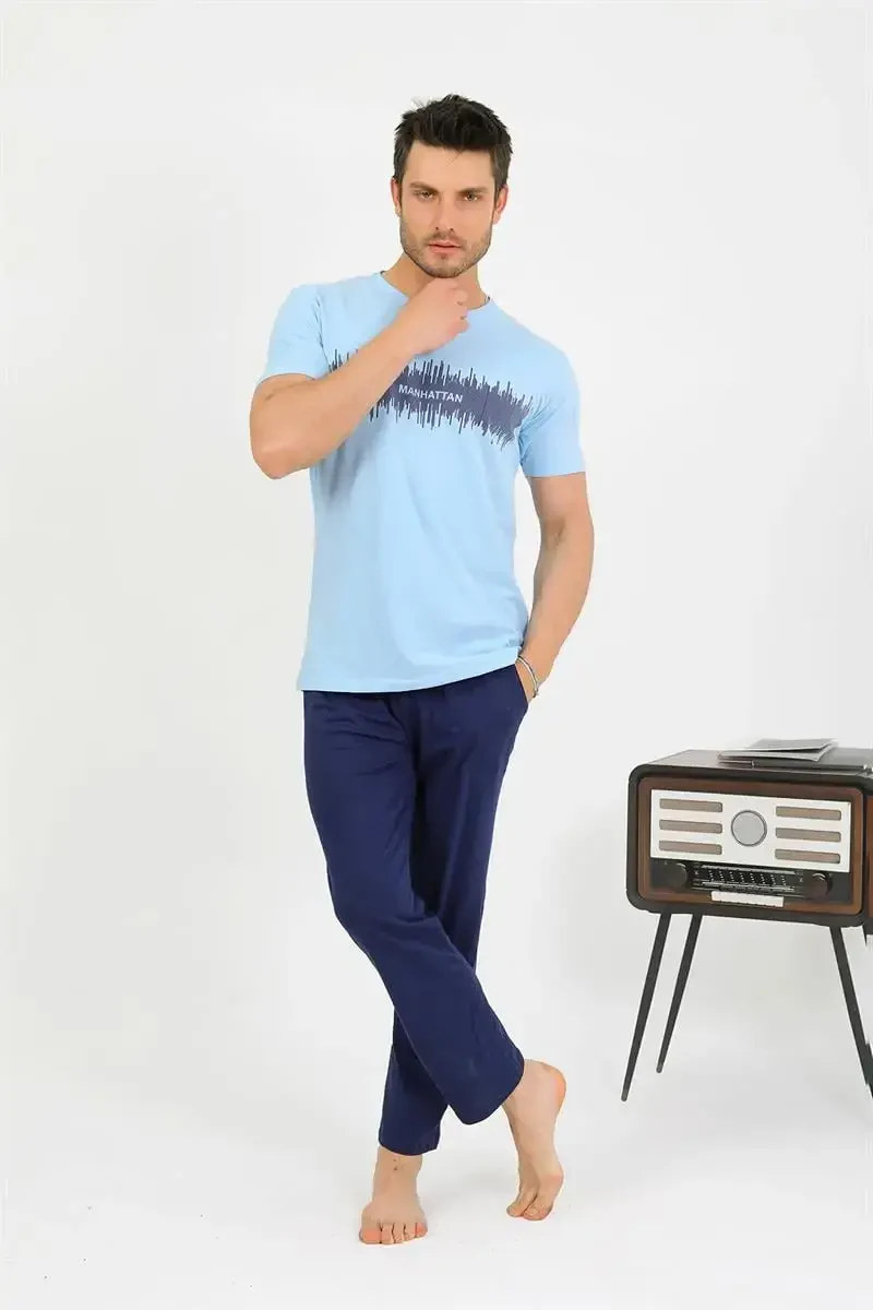 Akbeniz Erkak Paxta Pijamalar To'plami Movi - 6875