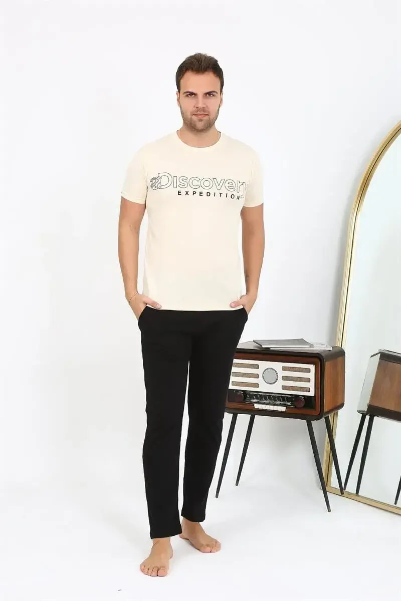 Akbeniz Erkek Kısa Kol Pijama Takımı | Krem Penye Rahat Uyku