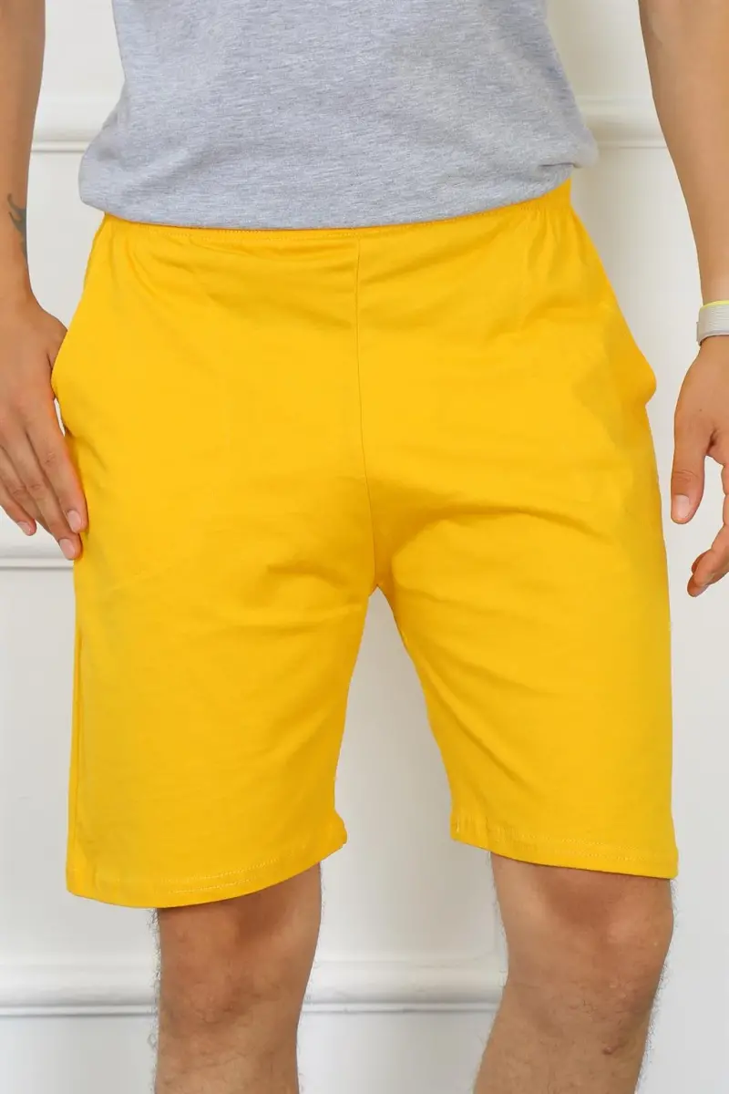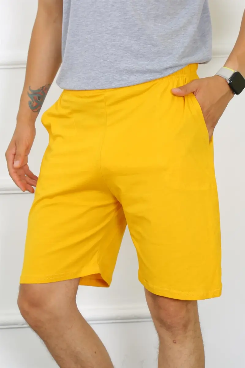 Erkek şort, pamuk şort, sarı şort, yazlık şort, Akbeniz, rahat şort, erkek giyim, plaj şortu, pamuklu kumaş, erkek modası