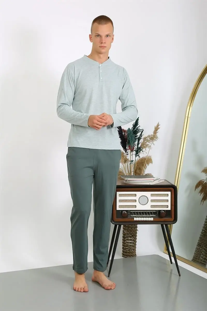 Мужской пижамный комплект, трикотажная пижама, пижама с длинными рукавами, хлопковая пижама, мятно-зеленая пижама, удобная пижама, домашняя одежда, мужская одежда, пижама, Akbeniz