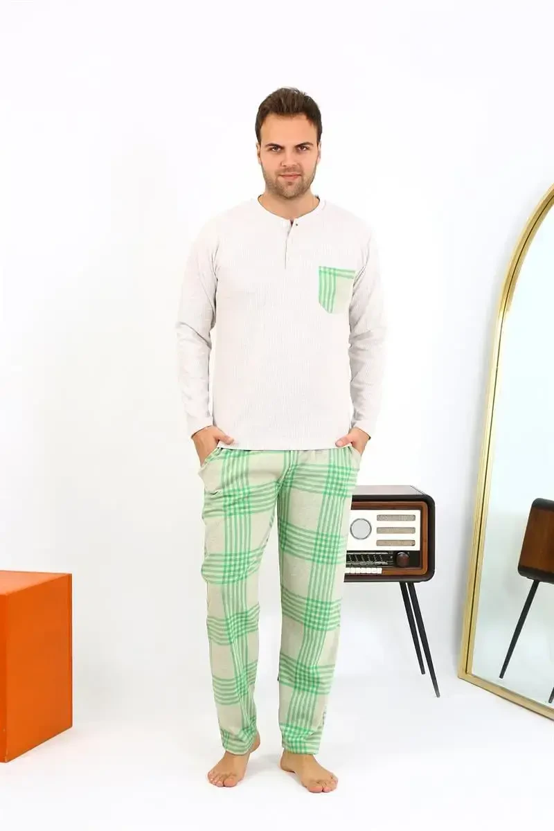 Experience comfort and style together with Akbeniz Men's Long Sleeve Knitted Cream Pajama Set 6861. If you don't want to compromise on your comfort while relieving the tiredness of the day, this pajama set is just for you. Thanks to its 100% cotton fabric, it allows your skin to breathe, prevents sweating and offers a feeling of freshness that lasts all day. The calm and elegant touch of cream color helps you make a peaceful start to your sleep pattern.Akbeniz stands out with its designs that do not compromise on quality in men's pajama fashion. This pajama set is an indication of the brand's meticulous workmanship and quality material selection. Consisting of a long-sleeved top and comfortable cut bottom, this set offers a comfortable sleep experience without restricting your freedom of movement. You will feel like you are not wearing anything while relaxing at home, reading a book or watching television.The cream color of the pajama set is a timeless option that appeals to all styles and tastes. It can easily find a place in the wardrobe of both young and mature men. It is also a stylish and useful alternative that you can give to your loved ones. You can make your loved ones happy by gifting them Akbeniz quality on birthdays, New Year's or special occasions.Akbeniz Men's Long Sleeve Knitted Cream Pajama Set 6861 stands out not only with its comfort but also with its durability. Thanks to its high-quality cotton fabric, it is long-lasting and resistant to frequent washing. Its colors do not fade, its shape does not deteriorate, and it maintains its new appearance as on the first day. In this way, you have a pajama set that you can enjoy for many years.From the moment you place your order, we work meticulously to ensure that your product reaches you as soon as possible. Your product, which is shipped within 24 hours, is delivered safely to your door. In this way, you do not have to wait long to get your new pajama set.If you are hesitant about choosing a size, you can easily determine the most suitable size for you by examining the size chart in the product images. The size on the model is M, which may give you an idea about size selection. Remember, choosing the right size is important for your comfort. Akbeniz helps you achieve the best fit by offering options suitable for every body.Enjoy being both stylish and comfortable with Akbeniz Men's Long Sleeve Knitted Cream Pajama Set 6861. This pajama set, which you will not want to take off at the end of the day, will be an indispensable part of your sleep routine.