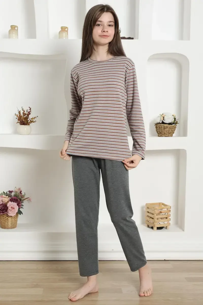 Dreams will be much sweeter now with the Akbeniz Girls' Knitted Pajama Set 20424! This cute and comfortable pajama set offers a soft touch to your child's delicate skin all day long thanks to its high-quality 100% cotton fabric. As a brand that combines quality and comfort in children's clothing, Akbeniz has shown the same care in this pajama set. This set, which girls will love to wear, is an ideal option both for sleep times and for spending pleasant time at home.The top and bottom of the pajama set have a comfortable cut that does not restrict your child's freedom of movement. Thanks to its flexible waistband, it can be easily put on and taken off and provides comfort throughout the day. With its vibrant colors and cute design, this pajama set will add joy to your child's wardrobe. In addition, thanks to its 100% cotton content, it does not cause sweating and helps your child's skin breathe. In this way, you can rest assured while your child sleeps soundly.Akbeniz Girls' Knitted Pajama Set 20424 stands out not only for its comfort but also for its durability. Thanks to its quality stitching and fabric, it offers long-lasting use. You will not encounter problems such as shrinkage or fading after washing. This makes this pajama set a long-term investment.Different age-appropriate size options are available so you can find the most suitable option for your child's body. Please review the size chart below to make sure you choose the correct size. Remember, choosing the right size directly affects the comfort and lifespan of the pajama set.Make your child's bedtime more enjoyable with the Akbeniz Girls' Knitted Pajama Set 20424. Both comfortable and stylish, this pajama set will be one of your child's favorite outfits. Order now and ensure your child has a comfortable sleep experience! Your order will be shipped within 24 hours, so your child will receive their new pajamas as soon as possible.The size on the mannequin is 9-10 Years old. This will help you better understand the fit and cut of the pajama set. By choosing the most suitable size according to your child's age and body measurements, you can achieve a perfect fit. Akbeniz cares about the health and comfort of your children. For this reason, as with all our products, no harmful substances have been used in this pajama set. You can choose it with confidence.