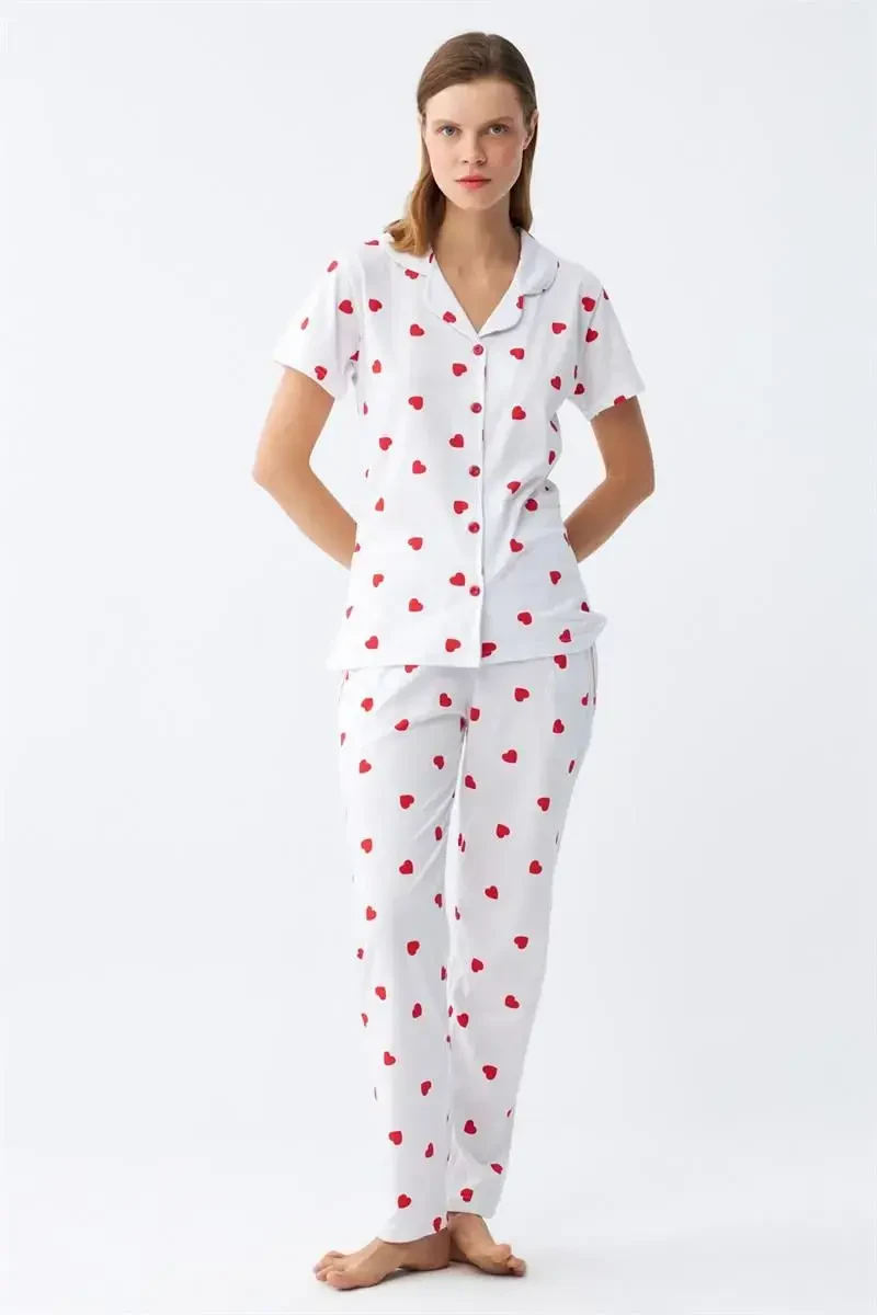 Akbeniz Ayollar Oq Qizil Yurakli Old Tugmachali Pijama To'plami, uyda o'tkazgan har bir oningizni maxsus qilish uchun mo'ljallangan. Kechalari miriqib uxlayotganingizda yoki dam olish kunlari nonushtangizni qilayotganingizda ham o'z nafisligingizdan voz kechmoqchi bo'lmasangiz, bu pijama to'plami aynan siz uchun! Yumshoq paxta matosi teringizga mayin tegib, oq zamin ustiga sepilgan qizil yuraklar energiya bilan to'lgan ko'rinishni taqdim etadi. Old tugmachali dizayni tufayli osongina kiyib yechish mumkin, shu bilan birga klassik va nafis muhit yaratadi. Ushbu pijama to'plami nafaqat uyqu uchun, balki uyda dam olayotganda, kitob o'qiyotganda yoki yaqinlaringiz bilan suhbatlashayotganda ham sizga hamroh bo'ladigan ajoyib tanlovdir. Qulay kesimi tufayli harakat erkinligingizni cheklamaydi, kun bo'yi o'zingizni qulay his qilishingizni ta'minlaydi. Ustiga, nafis dizayni tufayli mehmonlaringiz kelganida ham yechgingiz kelmaydigan darajada yoqimli ko'rinishga ega. Akbeniz sifati bilan ishlab chiqarilgan ushbu pijama to'plami uzoq umr ko'rishni taqdim etadi va ranglari so'nmasdan, ilk kundagi yorqinligini saqlab qoladi. O'zingizni erkalash yoki yaqinlaringizga unutilmas sovg'a berish uchun yana nimani kutyapsiz? Akbeniz Ayollar Oq Qizil Yurakli Old Tugmachali Pijama To'plami bilan uyda o'tkazilgan vaqtni zavqga aylantiring!