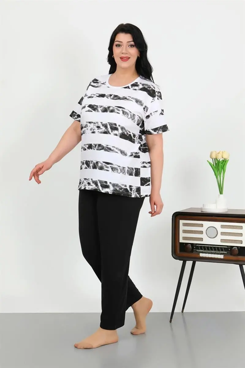 Akbeniz Kadın Büyük Beden Kısa Kol Penye Pijama Takımı Beyaz 202505