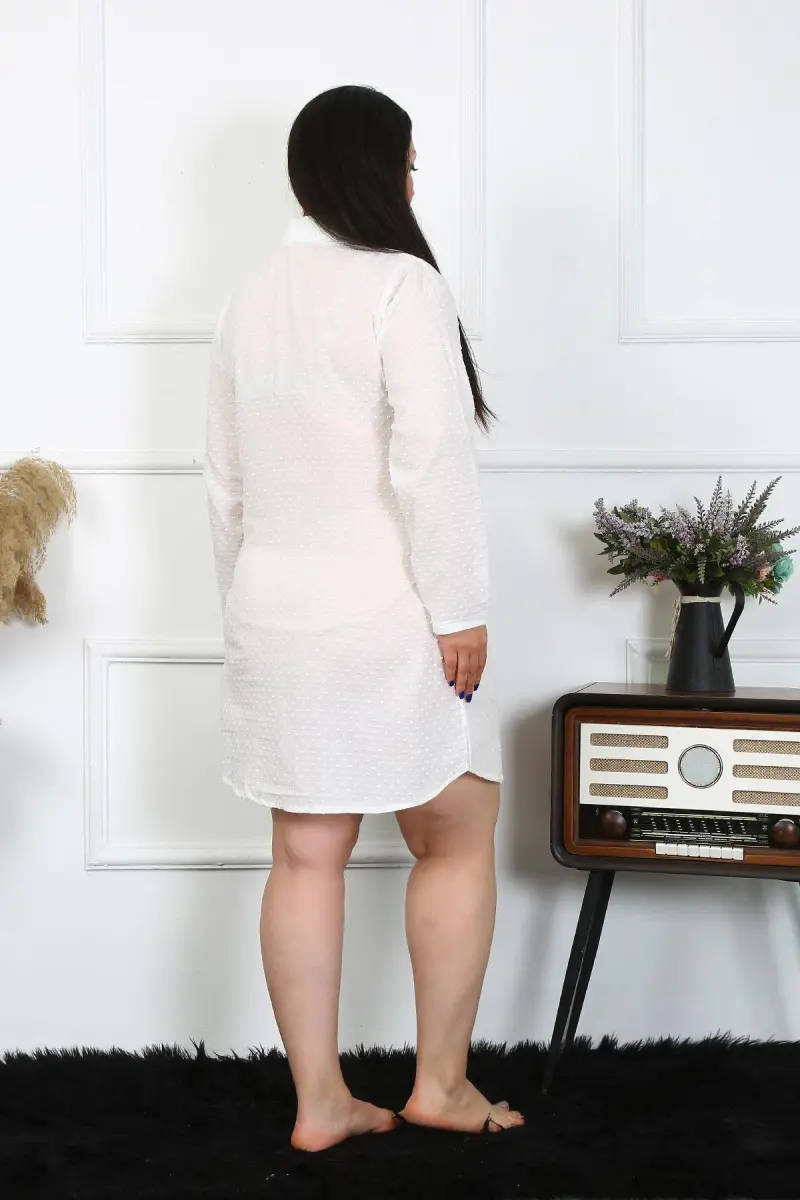 Akbeniz Kadın Büyük Beden Pamuk Dokuma Düğmeli Uzun Kol Ekru Tunik Gecelik 12201