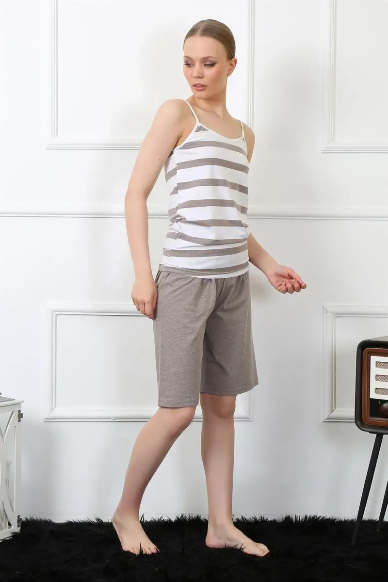 Akbeniz Spaghetti Strap Capri Set 3607 | Women's Pajama Set | Summer Cotton