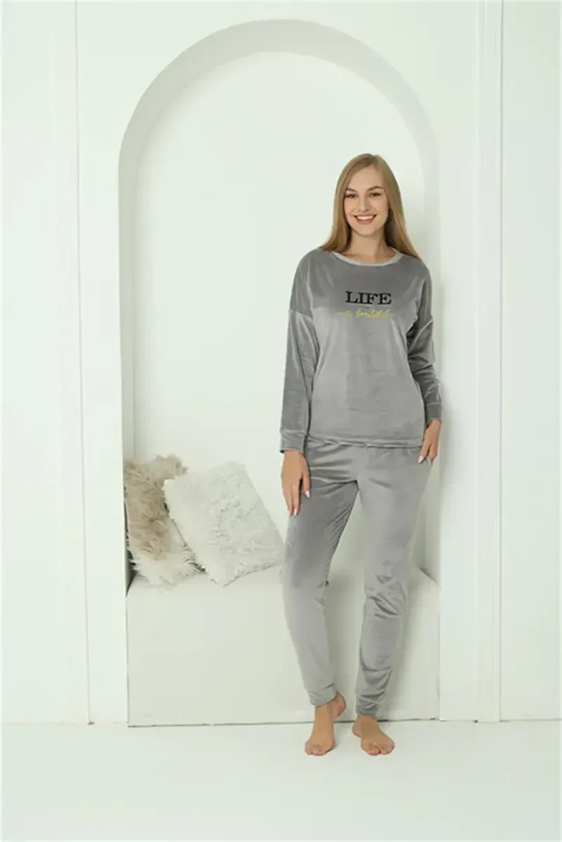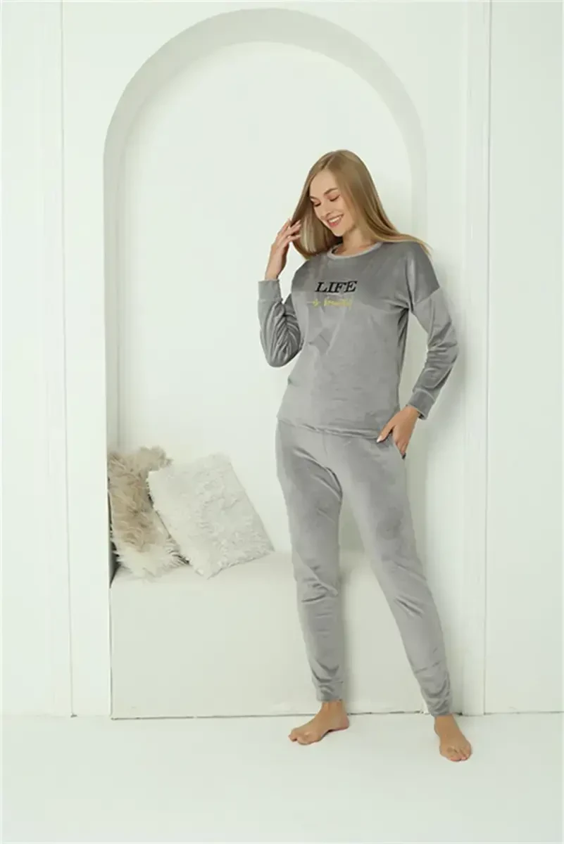 Kadın Kadife Gri Pijama Takımı | Akbeniz Rahatlığı