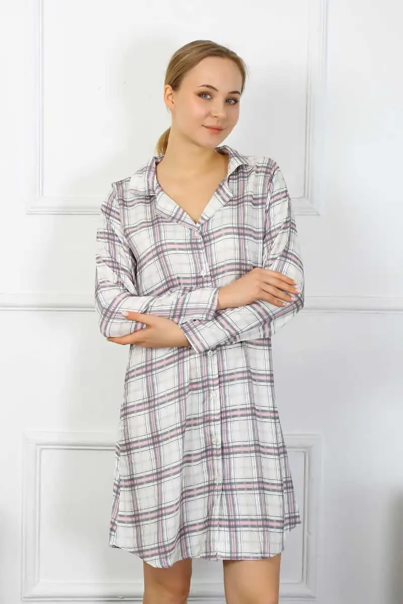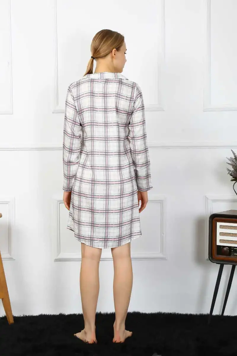 Akbeniz gecelik, pamuklu gecelik, uzun kollu gecelik, düğmeli gecelik, rahat gecelik