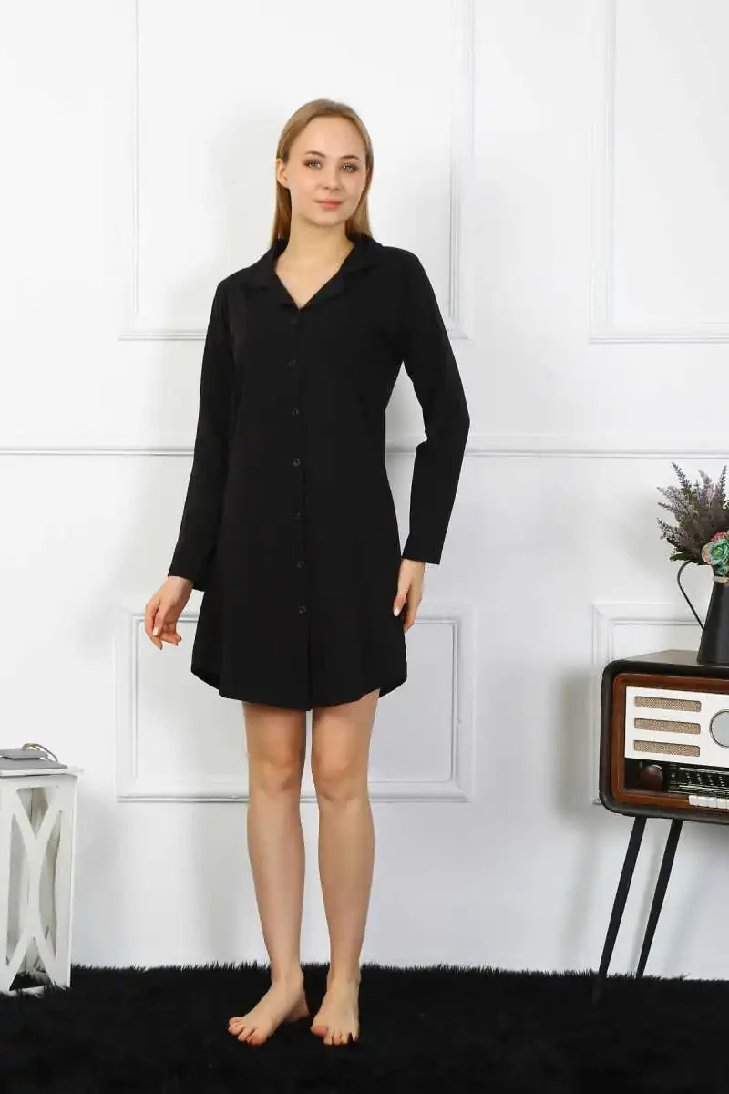Kadın gecelik, uzun kol gecelik, düğmeli gecelik, penye gecelik, siyah gecelik, Akbeniz gecelik, konforlu gecelik