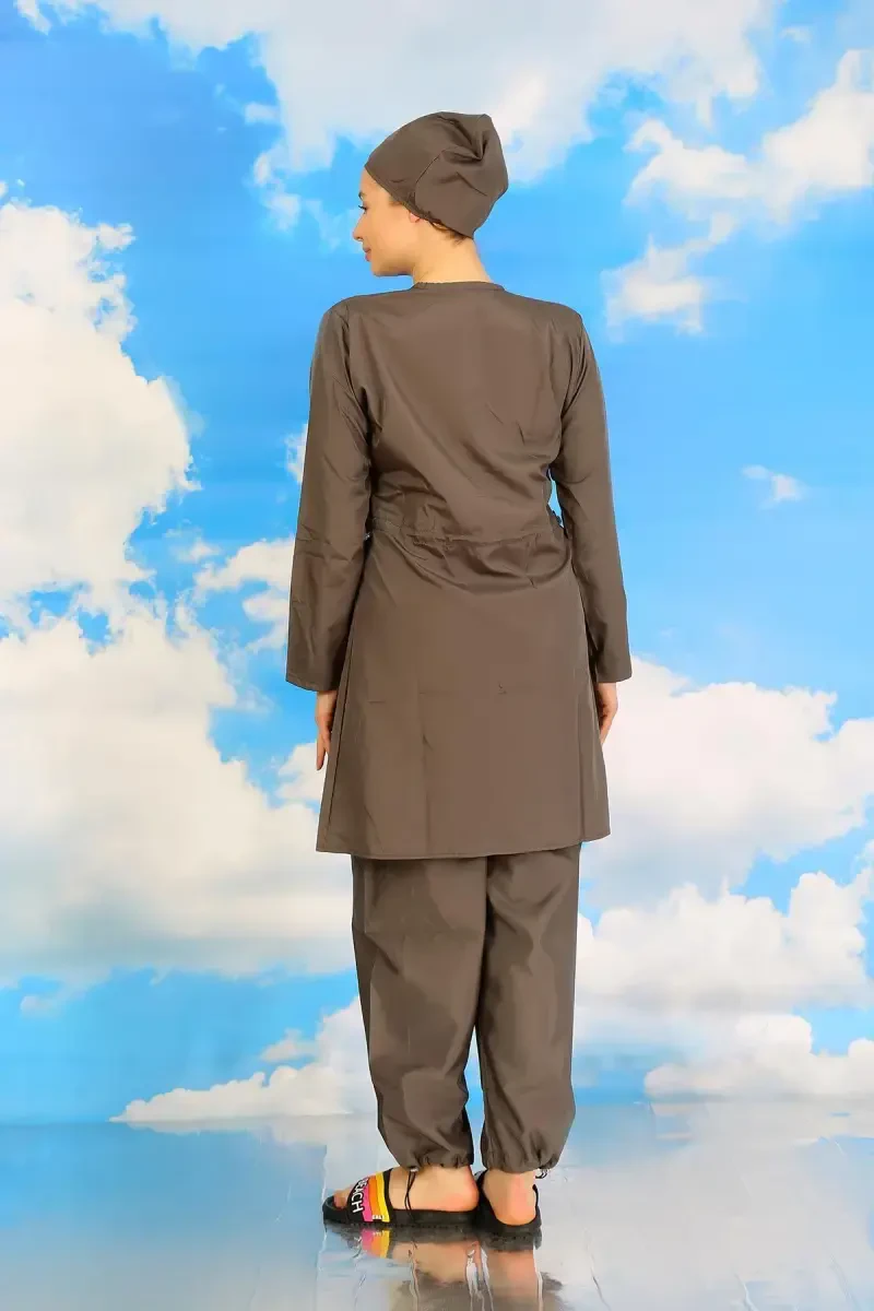 Akbeniz Tam Tesettür Mayo Füme | Su İtici, Hızlı Kurur, Esnek Kumaş