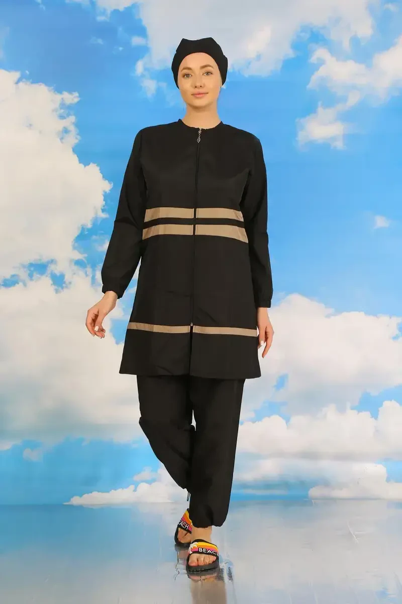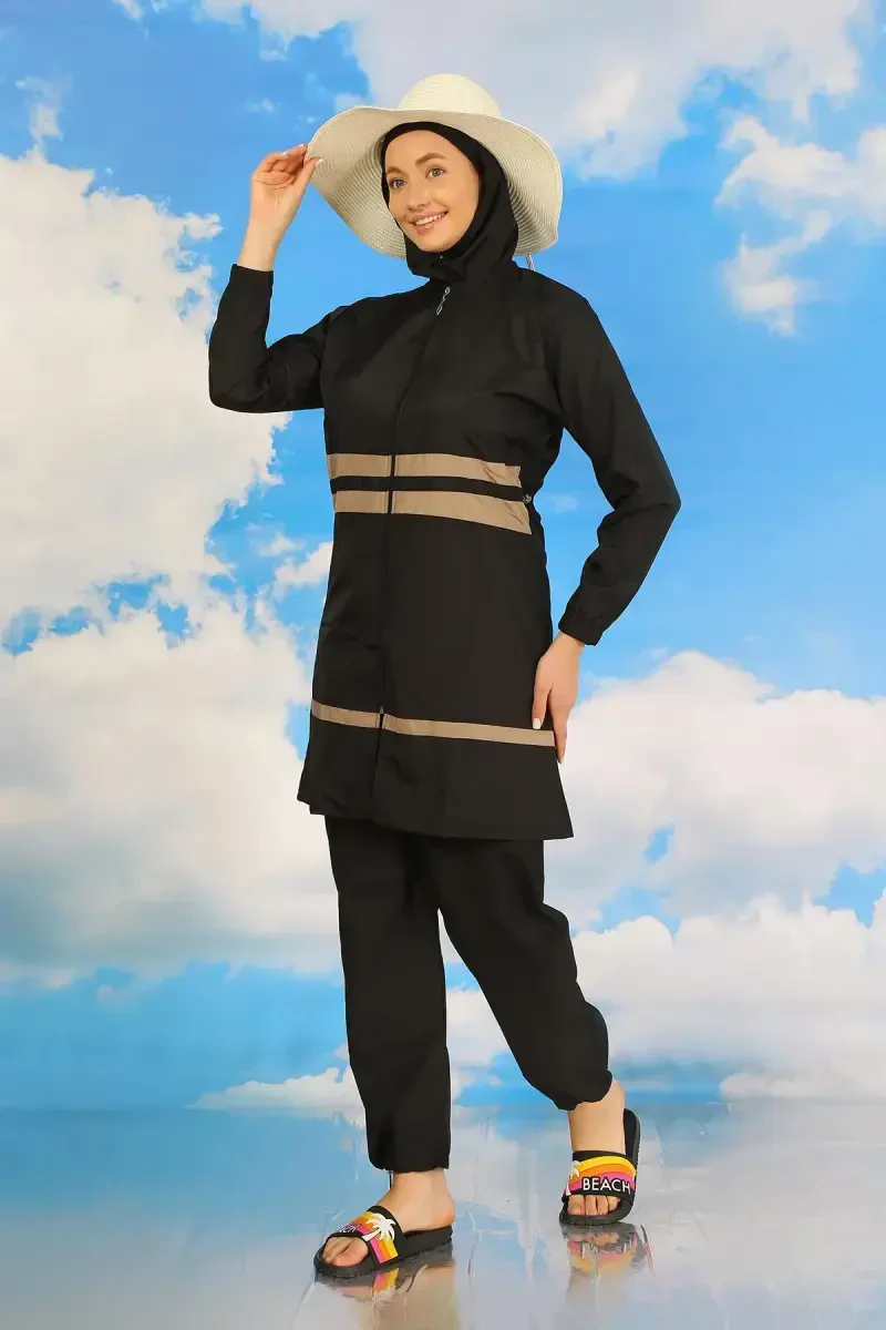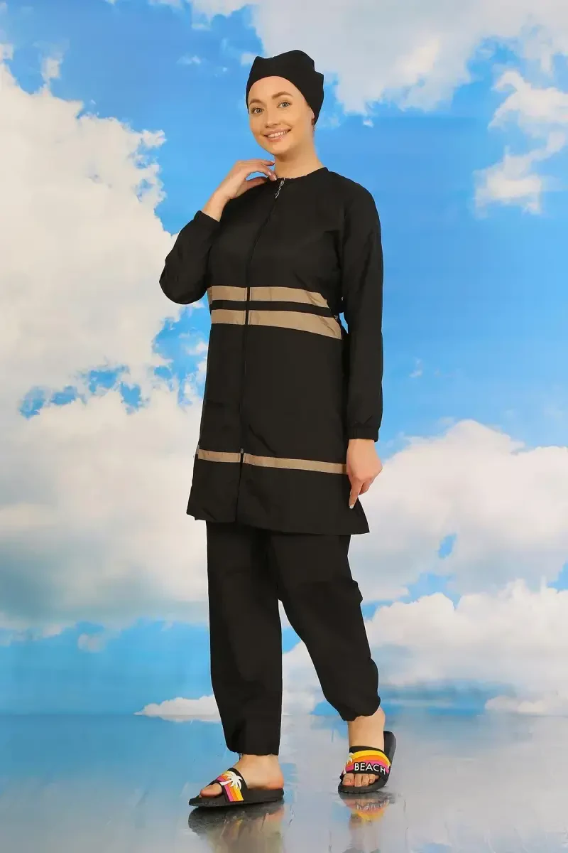 Akbeniz Tam Tesettür Mayo Siyah | Şık ve Rahat Plaj Giyim