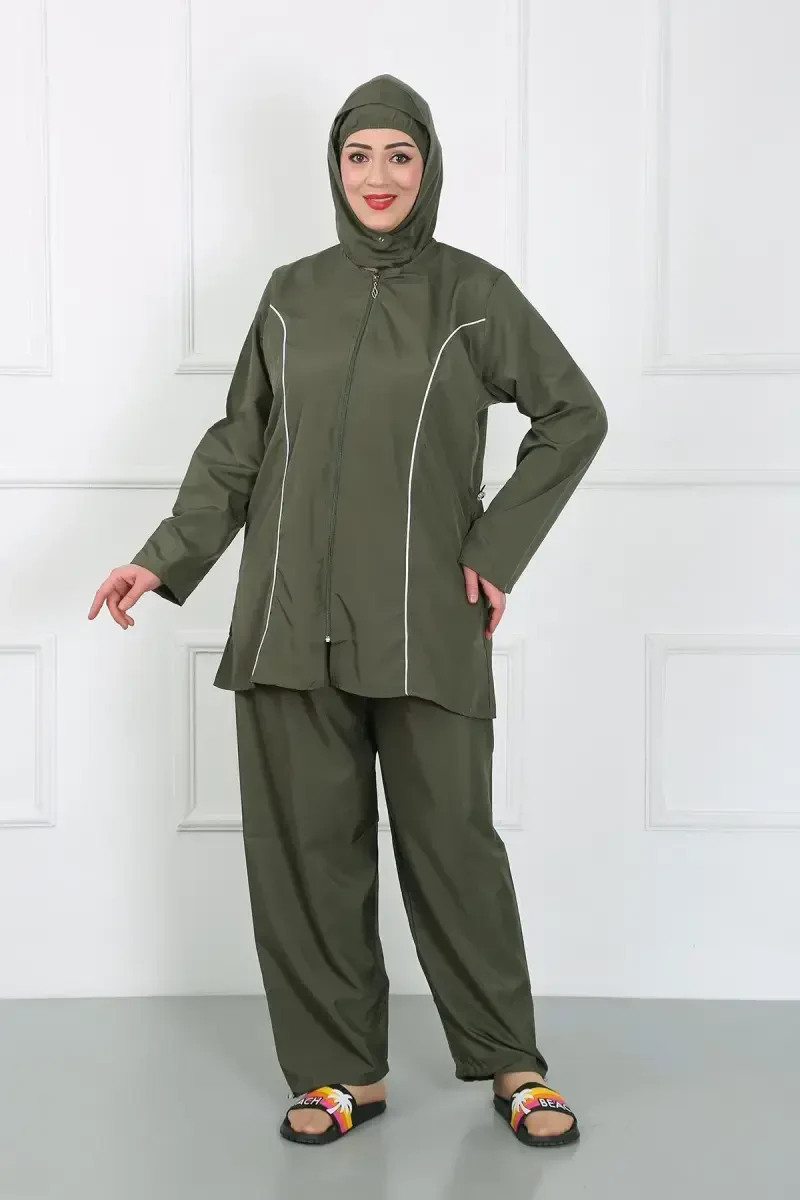 Akbeniz Katta hajmdagi tesettür Katta mayo Haki 44010 bilan dengiz va havuzdan nafisligingiz va qulayligingizdan voz kechmay zavqlaning. To'liq tesettür dizayni tufayli o'zingizni qulay va erkin his eting. Haki rangi bilan tabiatning ohanglarini o'zingizda olib yuring, nafis va zamonaviy ko'rinishga ega bo'ling. Ushbu mayo, katta hajmdagi ayollarning ehtiyojlarini hisobga olgan holda maxsus ishlab chiqilgan. Tana chiziqlaringizni eng yaxshi tarzda yashirgan holda, harakat erkinligingizni cheklamaydi. Yuqori sifatli material tufayli uzoq umr ko'rishni ta'minlaydi va har doim birinchi kundagi kabi ko'rinadi. Akbeniz sifati bilan ishlab chiqarilgan ushbu mayo, ham nafislikni, ham funksionallikni birgalikda taqdim etadi.Akbeniz To'liq Tesettür Katta hajmdagi mayo, %100 polyester matodan ishlab chiqarilgan. Polyester matoning afzalliklari orasida yengillik, chidamlilik va tez quritish xususiyatlari mavjud. Shu sababli mayo, suvdan chiqqandan so'ng qisqa vaqt ichida quriydi va sizga qulaylik taqdim etadi. Bundan tashqari, polyester matoning ajin tushishiga chidamli bo'lishi, mayongizni har doim tekis va ozoda tutishingizga yordam beradi. Belida va oyoq uchlarida joylashgan sozlanishi mumkin bo'lgan elastik kliplar, mayoning tanangizga to'liq o'tirishini ta'minlaydi. Ushbu kliplar tufayli mayoning sirpanishini yoki yuqoriga qarab ko'tarilishini oldini olib, suv ichida erkin harakat qilishingizni ta'minlaydi.Ushbu mayo, nafaqat nafis va qulay bo'lish bilan birga, amaliy foydalanish xususiyatlariga ham ega. Oson kiyiladi va yechiladi va tezda quriydi. Ta'til chamadoningizda ko'p joy egallamaydi va sayohatlaringizda sizga hamroh bo'ladi. Quyoshning va xlorning zararli ta'siriga chidamli mato tufayli uzoq vaqt davomida rangini va shaklini saqlaydi. Shunday qilib, yoz davomida ishonch bilan foydalanishingiz mumkin. Akbeniz Katta hajmdagi tesettür Katta mayo Haki 44010, ham havuzda, ham dengizda sizga ajoyib tajriba taqdim etadi. O'zingizni xavfsiz va erkin his etishingiz uchun ishlab chiqilgan. Har bir detali ehtiyotkorlik bilan o'ylangan ushbu mayo, garderobingizning ajralmas bir qismiga aylanadi. Hozir buyurtma bering va yozning zavqini to'yib oling!