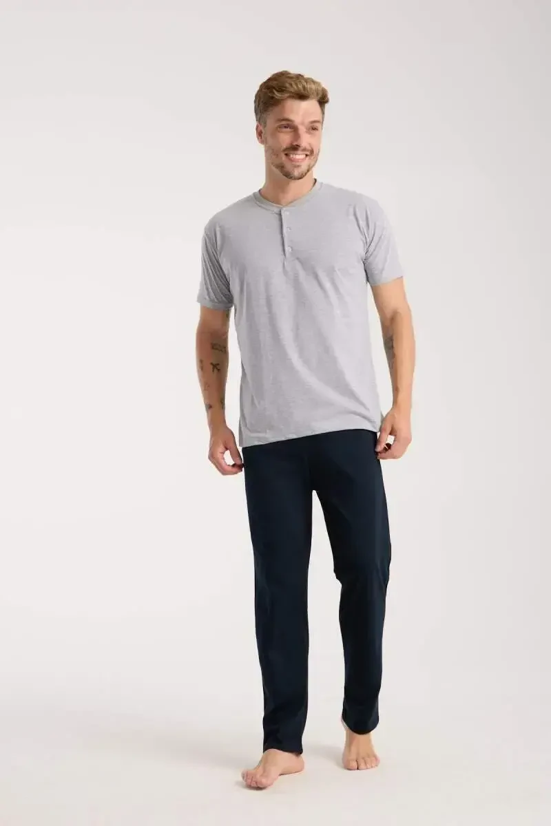 Don't compromise on your elegance while relieving the fatigue of the day with the Akbeniz Men's Grey Buttoned Collar Short Sleeve Pajama Set. Designed with Akbeniz quality, this special pajama set stands out as a rare option that combines comfort and aesthetics in the world of men's underwear. This set, which carries the nobility of gray color, adds elegance to its elegance with its buttoned collar detail. When you wake up in the morning or retire to rest in the evening, this Akbeniz pajama set offers a soft touch to your skin and provides a comfortable experience. Moreover, you will not only be comfortable, but you will also enjoy being stylish. Akbeniz designed this pajama set knowing that men are fond of comfort and style. Both the fabric selection and the stitching details offer long-lasting use and allow your skin to breathe. Designed to make your time at home more enjoyable, this product is also a meaningful option that you can give to your loved ones. This pajama set, which has a special place in Akbeniz's men's underwear collection, is a must-have in every man's wardrobe. After a long day, pamper yourself with the Akbeniz Men's Grey Buttoned Collar Short Sleeve Pajama Set. Its comfortable cut does not restrict your freedom of movement, while its stylish design ensures that you look well-groomed at all times. This special pajama set, which will increase your sleep quality and make your time at home more enjoyable, is offered to you with Akbeniz assurance. This pajama set, carefully prepared by Akbeniz, offers not only a garment, but also a lifestyle. This product, which is an ideal choice for men who are looking for comfort and style together, is a candidate to be the favorite of those who always want to be comfortable. Experience elegance and comfort together with this quality pajama set, which has a special place among Akbeniz's men's underwear collection. Moreover, it provides ease of use with its easily washable and ironable structure.