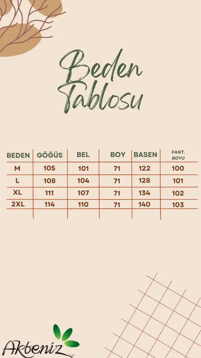 ## Akbeniz Men's Long Sleeve Cotton Pajama Set 6863 SaksIndulge in peaceful and comfortable sleep with the Akbeniz men's long sleeve pajama set. Made from 100% cotton, this pajama set allows your skin to breathe, ensuring a relaxing night's sleep.### Features:* **Material:** 100% Cotton* **Style:** Long sleeve* **Pockets:** 1 pocket* **Color:** Saks* **Model Size:** M### Benefits:* Breathable cotton material provides comfort.* Long sleeve design keeps you warm on chilly nights.* Pocket design allows you to store belongings conveniently.* Fast delivery within 24 hours.Experience comfort and tranquility every night with the Akbeniz men's long sleeve pajama set. Make your sleep more enjoyable.