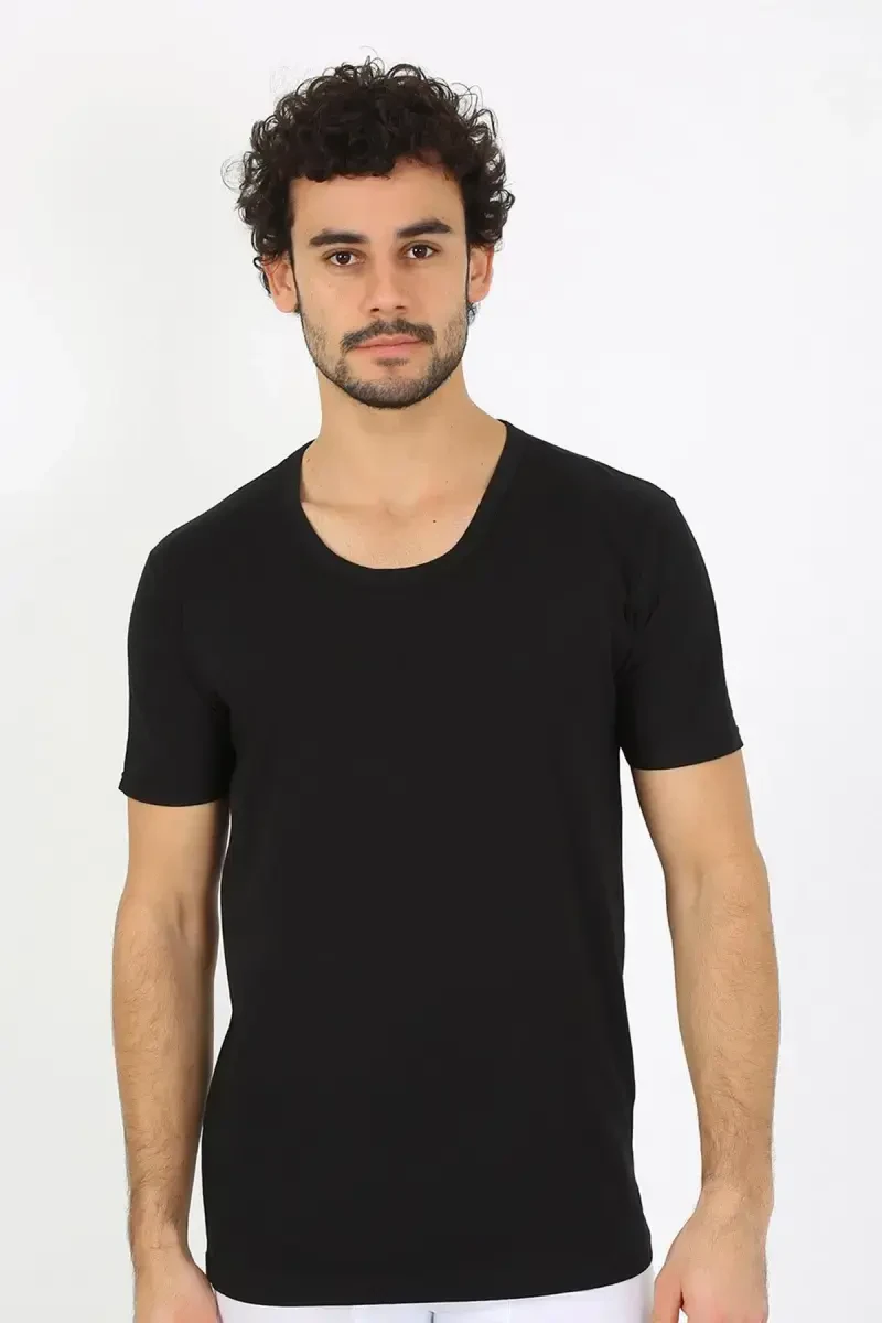 Akbeniz Мужская черная майка | 100% хлопок, трикотаж с открытым вырезом