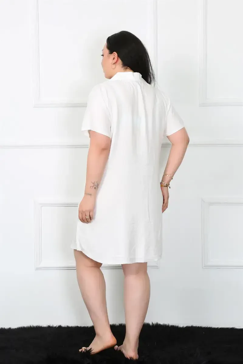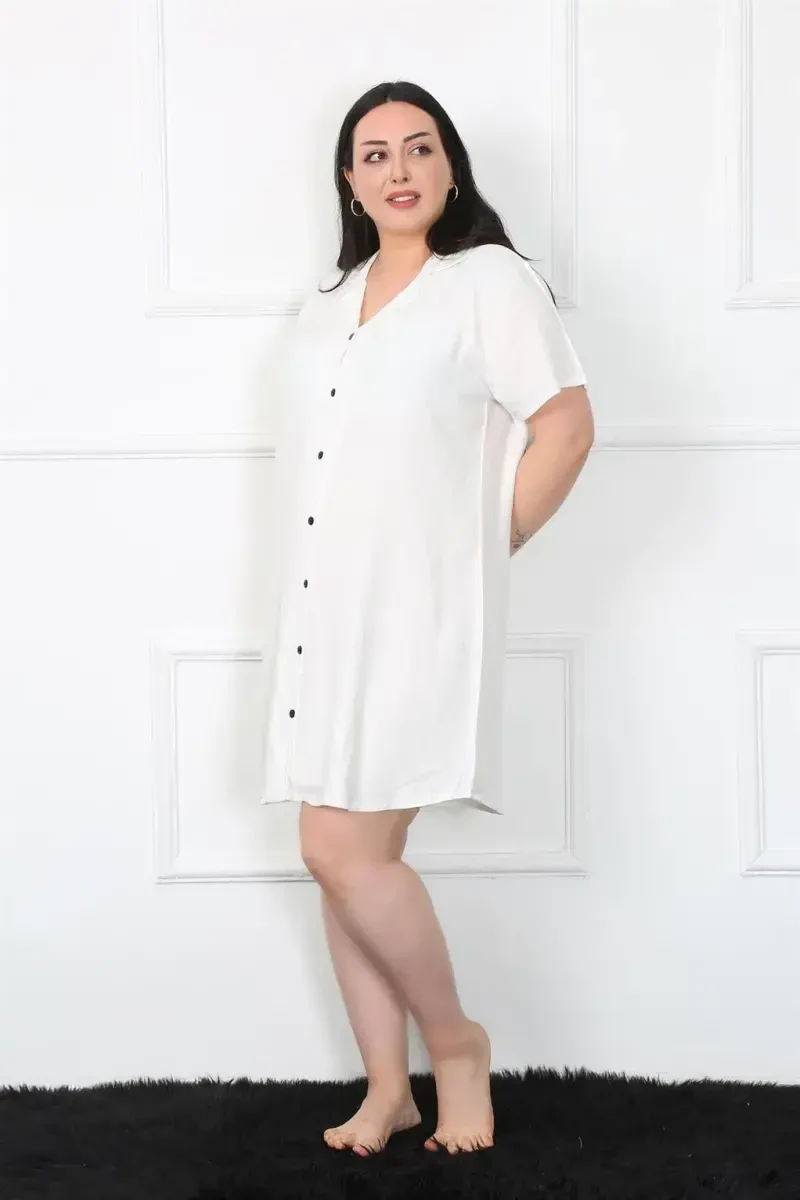 Experience comfort and elegance together with Akbeniz Plus Size Woven Buttoned White Tunic Nightdress 1022. This tunic nightdress, made of 100% cotton fabric that allows your skin to breathe and offers comfort all day long, is designed to meet the expectations of plus size women in particular. This special design, produced with Akbeniz quality, allows you to have a comfortable night at home and is also an option that you can use during the day without sacrificing your stylish appearance. Designed with the purity and simplicity of white, the tunic highlights your elegance with its button details. Thanks to its plus size cut, it fits your body perfectly and does not restrict your freedom of movement. Cotton woven fabric helps you stay fresh all day long by preventing sweating. Akbeniz Plus Size Woven Buttoned White Tunic Nightdress 1022 is a candidate to be an indispensable part of your wardrobe. Enjoy being comfortable and stylish while relaxing at home, hosting your guests or doing your daily chores. Thanks to its buttoned design, you can easily put it on and take it off and adjust it according to your needs. This tunic nightdress is an ideal choice for plus size women who love both comfort and style. This product, produced with Akbeniz quality, offers long-lasting use and can be easily ironed after washing. Thanks to the breathable structure of its fabric, it maintains your comfort even in hot weather. Feel special and enjoy comfort with Akbeniz Plus Size Woven Buttoned White Tunic Nightdress 1022. This tunic nightdress, every detail of which has been carefully considered, is a perfect option for women looking for quality and elegance in plus size clothing. The softness of the cotton fabric and the comfort of the tunic design guarantee your comfort all day long. Akbeniz combines comfort and elegance with this product, which it has designed by considering the needs of plus size women. The white color of the product easily adapts to any environment and you can combine it with different accessories. While the button details add an elegant touch to the tunic, the cotton fabric ensures that you are comfortable all day long. Express your style both at home and outdoors with Akbeniz Plus Size Woven Buttoned White Tunic Nightdress 1022.