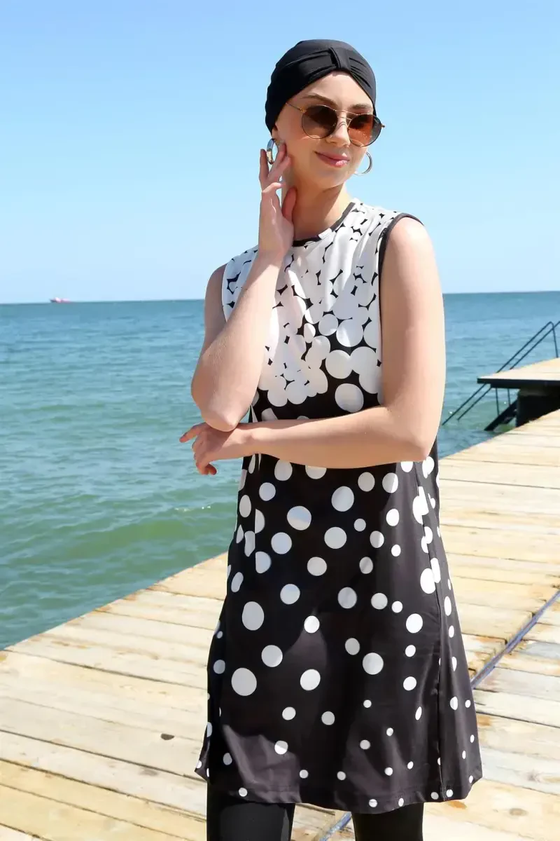 Akbeniz Sıfır Kol Puanlı Yarım Tesettür Mayo 33012 ile yazın tadını çıkarırken şıklığınızdan ve konforunuzdan ödün vermeyin. Bu özel tasarım mayo, hem modern görünümü hem de tesettür giyimin gerekliliklerini bir araya getirerek, havuzda ve denizde rahatça hareket etmenizi sağlar. Puanlı deseniyle dikkat çeken bu yarım tesettür mayo, stil sahibi kadınların tercihi olmaya aday.Akbeniz Sıfır Kol Puanlı Yarım Tesettür Mayo, yüksek kaliteli kumaşı sayesinde uzun ömürlü bir kullanım sunar. %95 polyester ve %5 likra karışımı, mayonun esnek ve vücuda tam oturmasını sağlarken, aynı zamanda hızlı kuruma özelliği sayesinde sudan çıktıktan sonra kısa sürede kuruyarak konforunuzu artırır. Kumaşın nefes alabilen yapısı, sıcak havalarda bile terlemeyi önleyerek gün boyu rahatlık sağlar.Bu şık mayo, sadece görünümüyle değil, aynı zamanda pratik kullanımıyla da öne çıkar. Sıfır kol tasarımı, hareket özgürlüğünüzü kısıtlamadan zarif bir görünüm sunar. Yarım tesettür modeli, vücudunuzun belirli bölgelerini örterek tesettür giyim prensiplerine uygun bir seçenek sunar. Puanlı deseni, mayoya dinamik ve eğlenceli bir hava katarken, plaj stilinizi tamamlar.Akbeniz kalitesiyle üretilen bu mayo, dayanıklılığı ve konforu bir arada sunar. Güneş ışığına ve klora karşı dayanıklı kumaşı sayesinde, uzun süreli kullanımlarda bile ilk günkü canlılığını korur. Ancak, mayonuzun ömrünü uzatmak için her kullanımdan sonra mutlaka iyice durulamanız ve tırtıklı veya pürüzlü yüzeylerle temasından kaçınmanız önerilir.Akbeniz Sıfır Kol Puanlı Yarım Tesettür Mayo 33012, farklı beden seçenekleriyle her vücut tipine uygun bir alternatif sunar. Beden tablosundan kendi ölçülerinize uygun bedeni seçerek, üzerinize tam oturan ve hareketlerinizi kısıtlamayan bir mayo deneyimi yaşayabilirsiniz. Unutmayın, doğru beden seçimi, hem konforunuzu artırır hem de mayonun üzerinizde daha şık durmasını sağlar.Plajda, havuzda veya su parkında, Akbeniz Sıfır Kol Puanlı Yarım Tesettür Mayo ile stilinizi konuşturun. Hem modern hem de muhafazakar bir görünüm elde etmek isteyen kadınlar için ideal bir seçim olan bu mayo, yaz gardırobunuzun vazgeçilmez bir parçası olacak. Şıklığı, konforu ve kaliteyi bir arada sunan Akbeniz, size unutulmaz bir yaz deneyimi yaşatır.