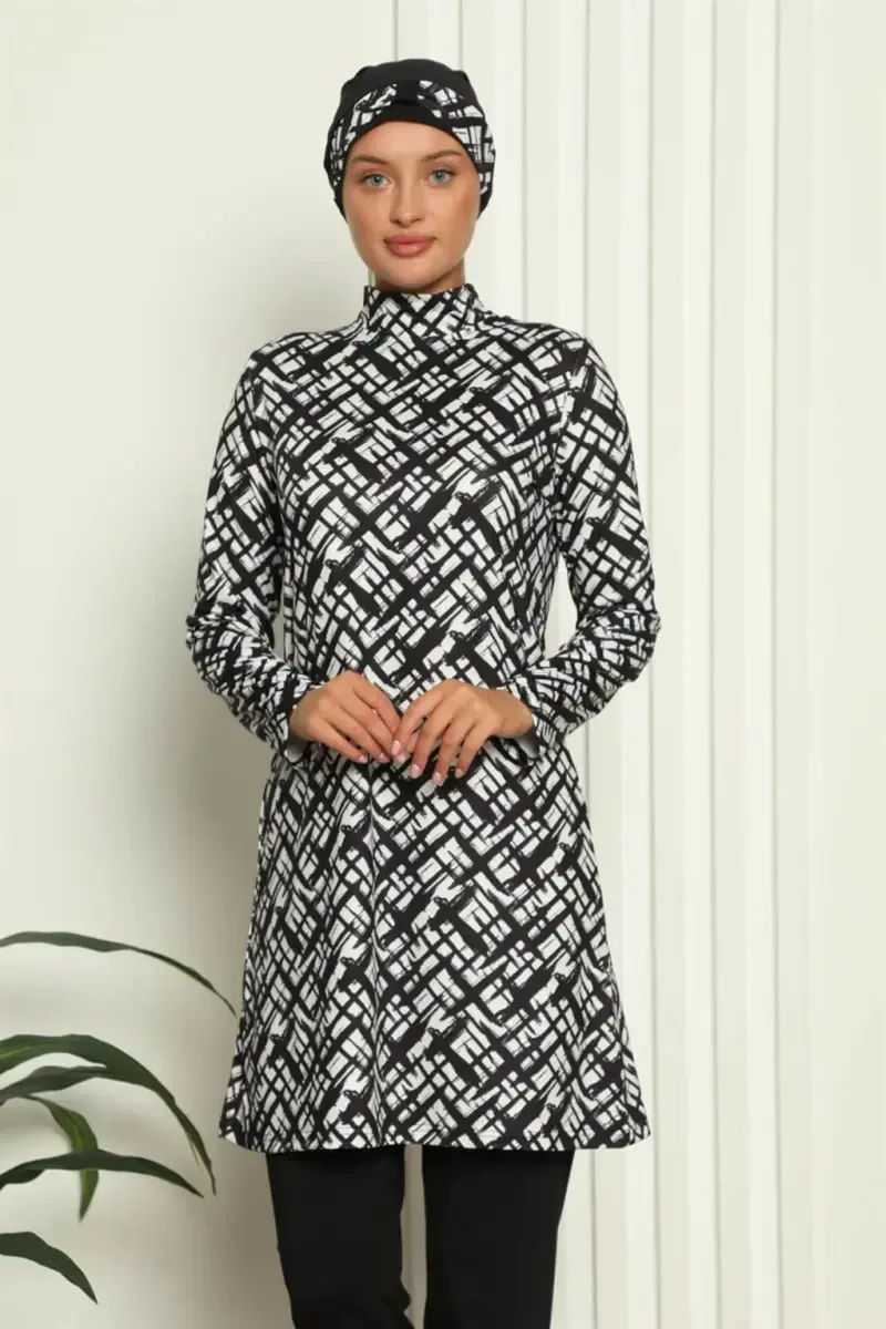 Akbeniz Tam Tesettür Digital Desenli Mayo 31037 | Chiroyli va Qulay Yozgi Kayfiyat!