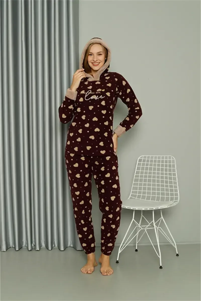 Akbeniz Welsoft Polar Ayollar Kapüşonli Pijama To'plami - Yumshoq, Issiq va Qulay!