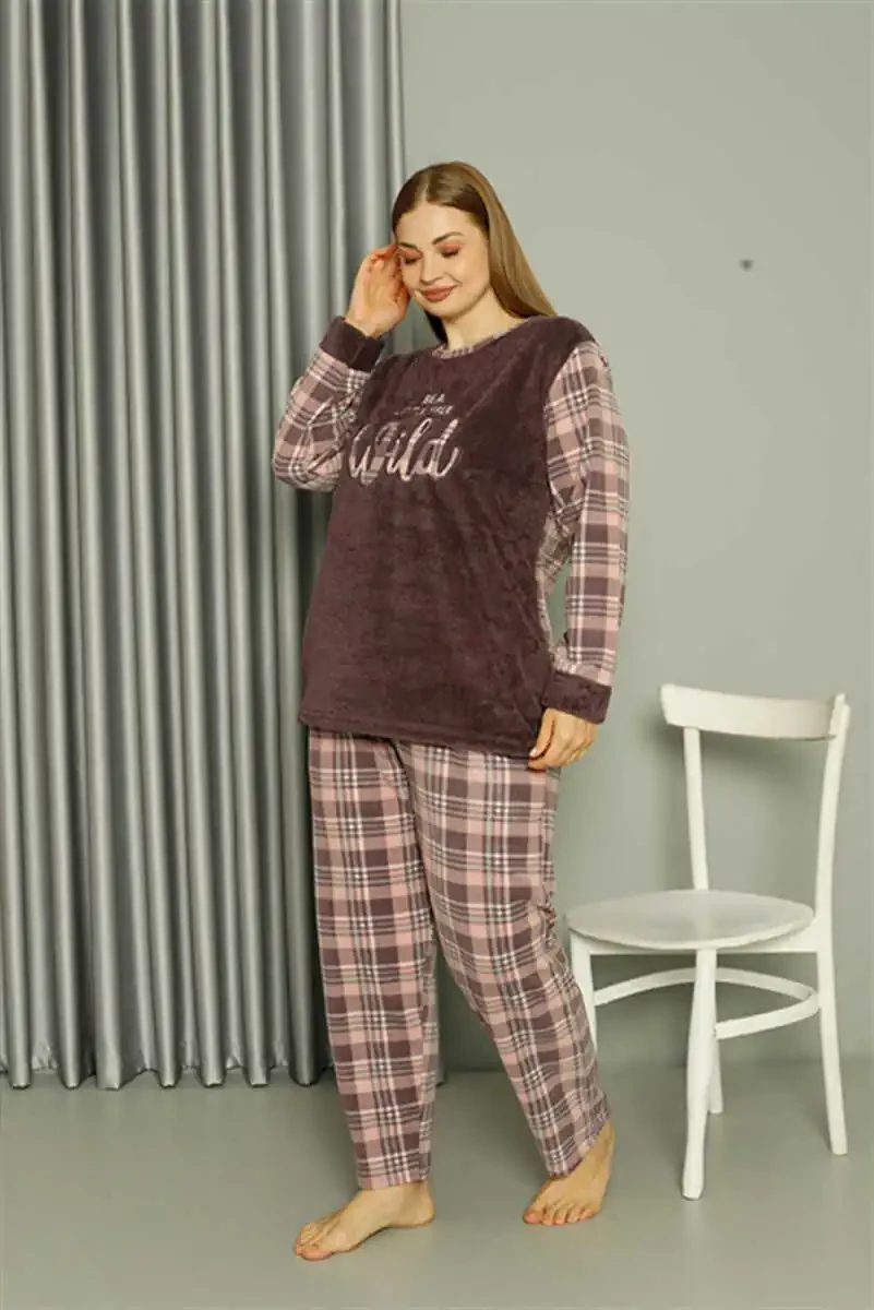 Akbeniz Kadın Büyük Beden Welsoft Polar Vizon Pijama Takımı 808040