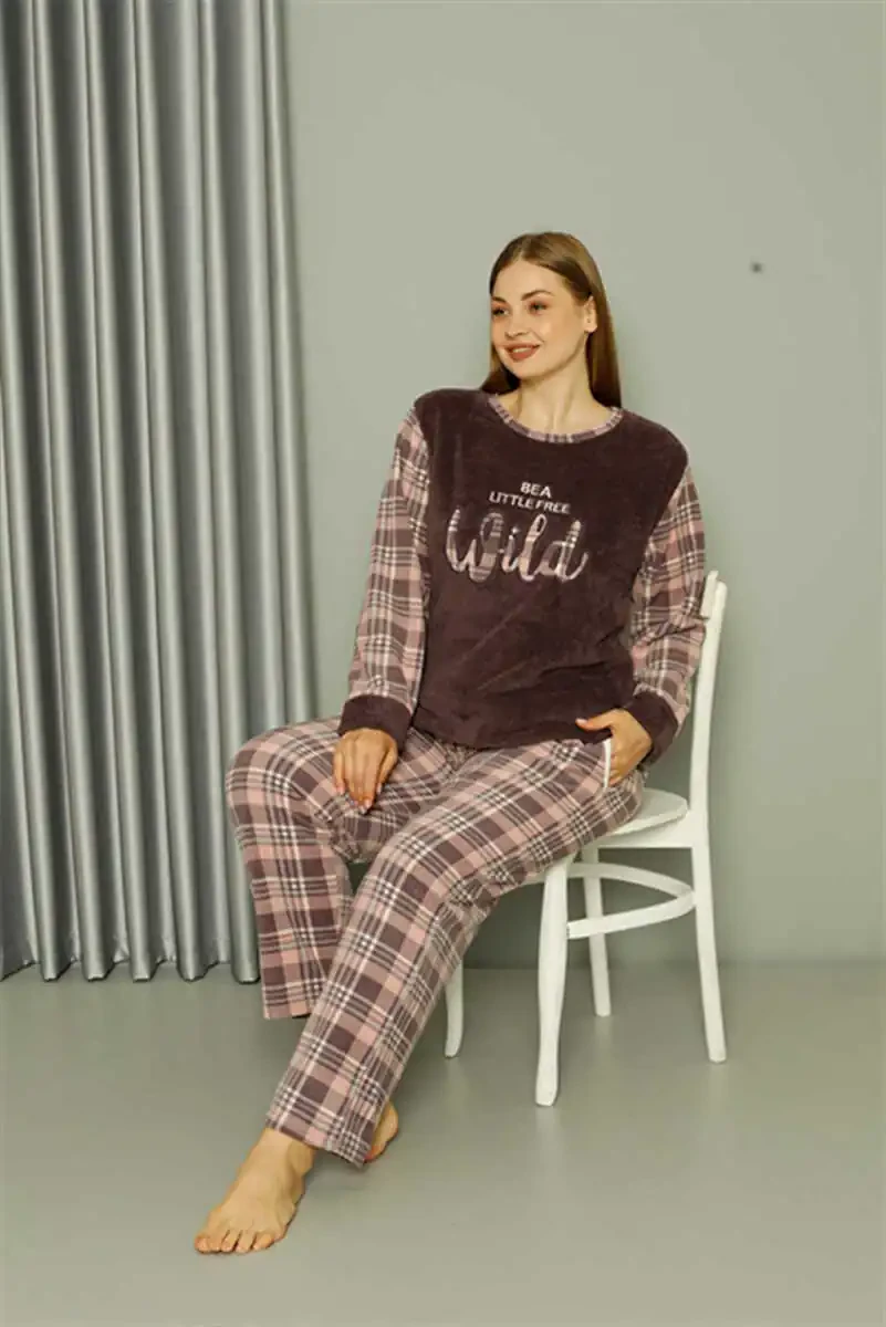 Welsoft Polar, kadın pijama takımı, büyük beden, vizon