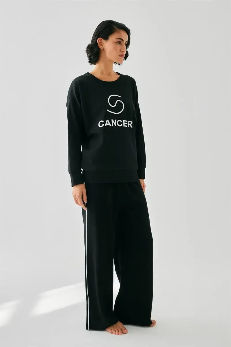 women's tracksuit, oversize tracksuit, cancer zodiac tracksuit, black tracksuit, 2 thread tracksuit, loungewear set, comfortable tracksuit, comfy tracksuit, akbeniz, women's clothing