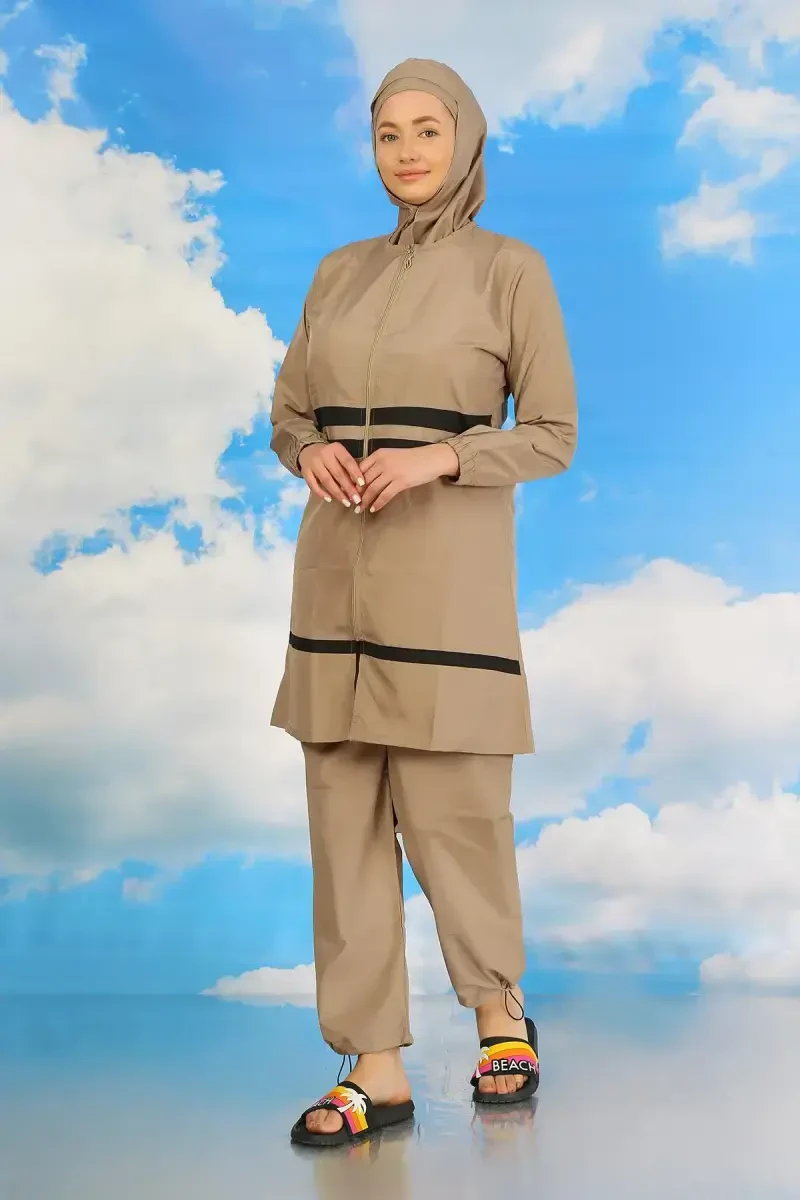 Akbeniz Women's Full Coverage Burkini Beige 31061 has a modern and elegant design that combines both style and comfort. It is specially designed for veiled women to freely enjoy the sea and pool. The beige color provides a natural and calm look, while the quality of the swimsuit fabric offers long-lasting use. With its waterproof and quick-drying feature, it provides all-day comfort. Thanks to its body-hugging cut, it does not restrict your freedom of movement. This swimsuit, produced with Akbeniz quality, is a stylish and useful option that you can safely use both in the pool and at the sea. With this swimsuit, which will be indispensable for your holiday suitcase, you will enjoy the sun and water without sacrificing your elegance. Moreover, thanks to its adjustable details, you can ensure that it fits your body perfectly, so you can feel more secure and comfortable. Akbeniz Full Coverage Burkini, which brings a new breath to beach fashion, is offered to the liking of veiled women by combining elegance and comfort. This swimsuit is not just a piece of clothing, but also a lifestyle. It helps you enjoy the water and sun to the fullest, while maintaining your elegance and originality. Always feel special with Akbeniz.