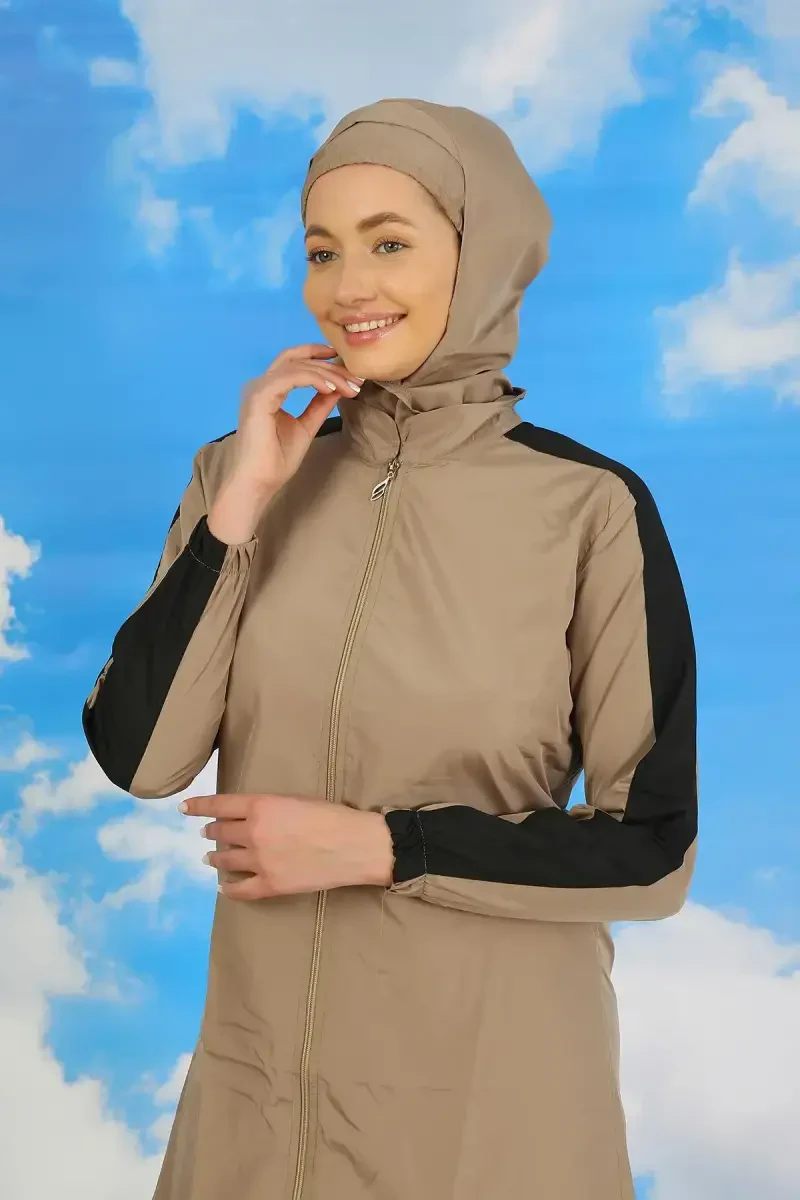 Akbeniz Women's Pants with Striped Sleeves Full Coverage Swimsuit Beige 31066 is designed to maximize the beach and pool enjoyment of veiled women. This special design swimsuit offers both elegance and comfort, providing its users with a unique experience. The swimsuit attracts attention with the elegance of its beige color, while offering an eye-catching look with its modern details. The stripes on the sleeve part add a dynamic and sporty atmosphere to the swimsuit, allowing you to get away from the ordinary. Thanks to its pants design, your freedom of movement is not restricted and you can move comfortably in the water. Its high-quality fabric offers practical use with its quick-drying feature, while also allowing your skin to breathe and preventing irritation. This swimsuit, produced with Akbeniz's years of experience and quality understanding, offers long-lasting use and its colors do not fade. Whether you are at the sea, in the pool or sunbathing, it always makes you feel stylish and comfortable. This swimsuit, which meets the expectations of women who prefer conservative clothing with its full coverage, will complete your beach style and add confidence to you. Akbeniz Women's Pants with Striped Sleeves Full Coverage Swimsuit Beige 31066 is not just a swimsuit, but also a style statement. Enjoy both comfort and elegance with this swimsuit and have an unforgettable summer experience. Thanks to its flexible structure, it fits the body perfectly and does not restrict your movements. Thanks to its high-quality material, it maintains its durability for a long time and accompanies you for many years. Thanks to its special fabric that protects against the harmful rays of the sun, it keeps your skin safe. With Akbeniz Women's Pants with Striped Sleeves Full Coverage Swimsuit Beige 31066, you can look stylish and not compromise on your comfort while enjoying the summer. This swimsuit will be an indispensable part of veiled women's summer wardrobe.