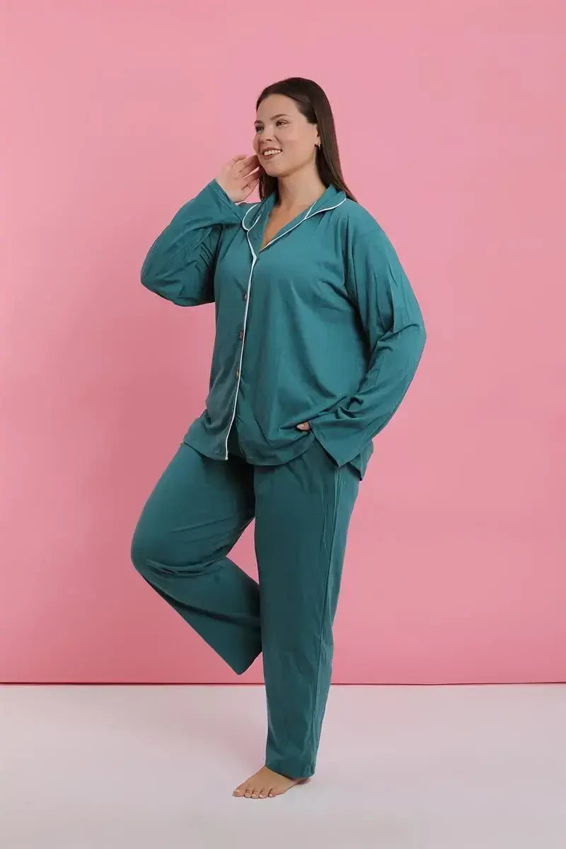 Catch the perfect harmony of comfort and elegance with Akbeniz Women's Plus Size Petrol Blue Buttoned Pajama Set. This special design allows you to have a comfortable sleep experience throughout the night while ensuring you do not compromise on your stylish appearance. This pajama set, which fits perfectly to every body type thanks to its plus size cut, will add a sophisticated atmosphere to your home with the fascinating tone of petrol blue. The buttoned top design makes it easy to put on and take off, while adding an elegant and stylish touch to the pajama set. Thanks to its high-quality, soft-textured fabric, it gently touches your skin, prevents irritation and provides a feeling of comfort that lasts all day long. With its non-sweating structure, it helps you stay cool and refreshed throughout the night. Akbeniz Women's Plus Size Petrol Blue Buttoned Pajama Set is the perfect option to accompany you not only for sleep but also for all the moments you spend at home. You can maintain your elegance even while preparing your morning breakfast, reading a book or watching television. Whenever you want to feel special and comfortable, this pajama set will be your best friend. Moreover, thanks to its durable fabric, it stays as new as the first day for many years. Its easy-to-wash and iron feature makes it extremely practical to use. This pajama set, produced with Akbeniz quality, is a perfect gift option for yourself and your loved ones. It is an ideal gift for a birthday, anniversary or just to say "I'm thinking of you". Pamper yourself with this pajama set that offers elegance, comfort and quality together, and make the time you spend at home more enjoyable. Akbeniz Women's Plus Size Petrol Blue Buttoned Pajama Set will be an indispensable part of your wardrobe and will make you feel good every time you wear it.