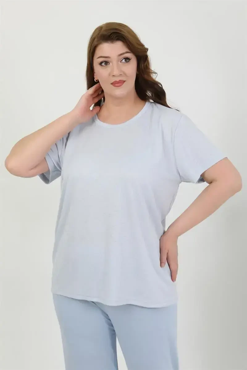 Enjoy comfort and elegance throughout the night with the Akbeniz Women's Plus Size Short Sleeve Jersey Pajama Set Blue 202510. Akbeniz is known for its designs that combine quality and comfort, and this pajama set is a perfect example of this understanding. Specially designed for plus size women, this pajama set fits your body perfectly and offers freedom of movement all day long. Thanks to its high-quality jersey fabric, it gently touches your skin, does not cause sweating and provides maximum comfort during sleep. The peaceful tone of blue helps you relax before sleep, while the short-sleeved design makes it an ideal choice, especially in hot weather. Akbeniz's carefully selected fabrics offer long-lasting use and easy care. You will not encounter problems such as shrinkage or fading after washing, so your pajama set will always stay as new as the first day. This pajama set, which is part of the Akbeniz New Big Size Fashion collection, is specially designed for women who are looking for quality in plus size clothing. Offering elegance and comfort together, this collection reveals your body lines in the best way with its cuts suitable for every body. Choose the Akbeniz Women's Plus Size Short Sleeve Jersey Pajama Set Blue 202510 to have a good night's sleep and wake up rested in the morning. This pajama set is not only a stylish and comfortable option to accompany you while sleeping, but also while relaxing at home. This set, which you will not want to take off while drinking your morning coffee or watching TV in the evening, will be an indispensable part of your wardrobe. Akbeniz always prioritizes customer satisfaction and therefore adheres to high quality standards in all its products. This pajama set has also been produced using the best materials, going through a meticulous production process. The size on the mannequin is 4XL, which shows how suitable the product is for plus sizes and how it fits the body. You can choose the one that suits your size and enjoy this comfortable and stylish pajama set. Feel special with the Akbeniz Women's Plus Size Short Sleeve Jersey Pajama Set Blue 202510.