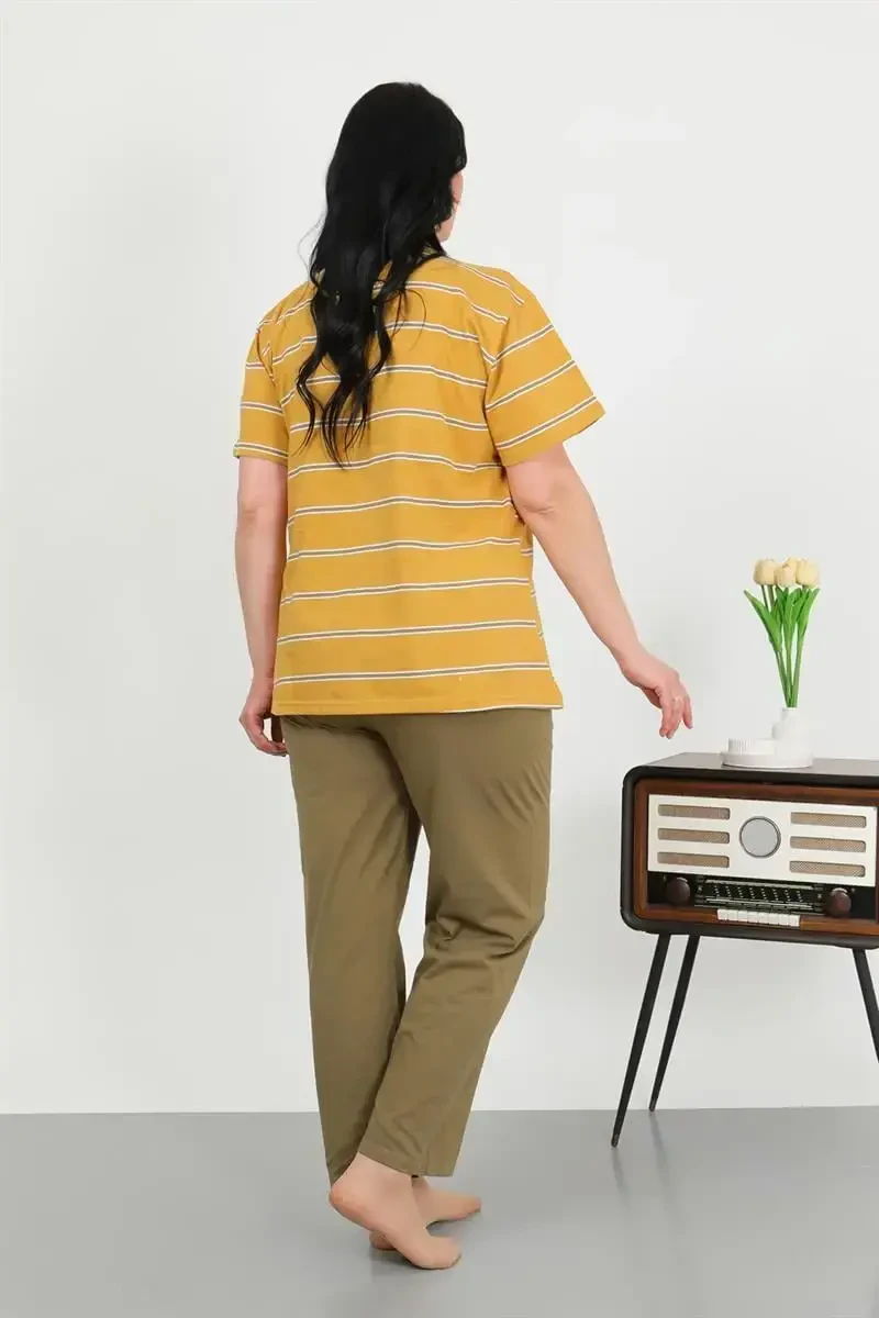 Plus size pajamas, women's pajama set, short-sleeved pajamas, cotton pajamas, yellow pajamas, comfortable pajamas, summer pajamas, Akbeniz pajamas, pajama set, plus size women