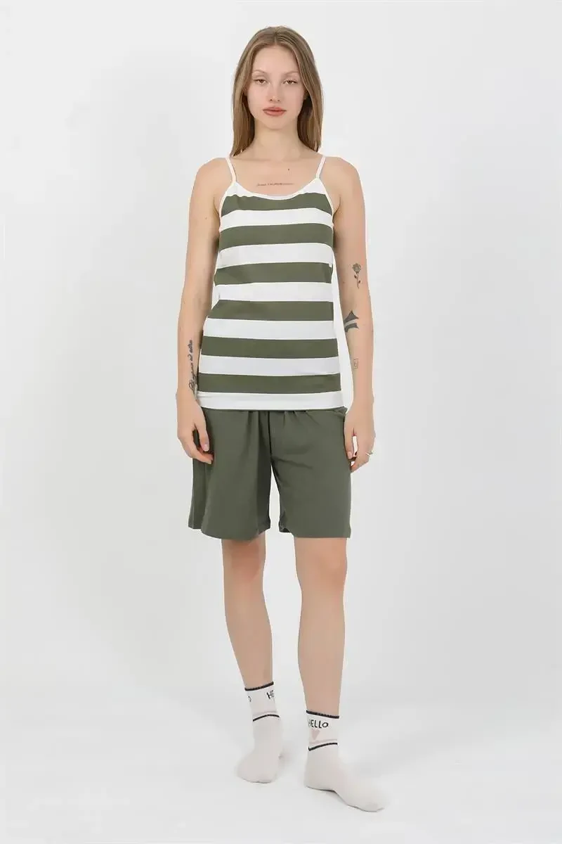 Enjoy both comfort and elegance during the hot summer days with the Akbeniz Women's Spaghetti Strap Cotton Jersey Shorts Set Khaki 3634. This set, carefully designed by Akbeniz, offers freshness throughout the day thanks to its natural cotton texture, while promising a striking look with its elegant spaghetti straps and modern shorts cut. The warmth of khaki color in earthy tones adds a natural touch to your style, while its comfortable cut allows you to enjoy your comfort while relaxing at home, meeting with friends, or doing light exercise. This stylish set stands out not only for its comfort but also for its versatility. You can create a daily style by combining the top piece with your favorite jeans, or you can complete the shorts with your t-shirt for a sporty look. This set, produced with Akbeniz quality, is specially designed for long-lasting use. The durability of the fabric ensures that it retains its original form even after washing. Its silky texture gently touches your skin, so you will feel comfortable throughout the day. Akbeniz has combined both elegance and comfort in this set by demonstrating its expertise in women's underwear. This set is a candidate to be an indispensable part of your wardrobe. You can choose this set either for yourself or as a gift for your loved ones, it will be appreciated by every woman. The timelessness of khaki color and the natural texture of cotton fabric make this set an option that you can use in any season. Complete your style, enjoy comfort and elegance with Akbeniz Women's Spaghetti Strap Cotton Jersey Shorts Set Khaki 3634. Moreover, thanks to being shipped within 24 hours, you can have this stylish set immediately. What are you waiting for to renew your wardrobe and bring a new breath to your style? Meet Akbeniz quality, feel the difference. This set is not just an underwear product, but also a lifestyle. Choose Akbeniz to feel special and be comfortable all day long. Remember, elegance and comfort can be together! The best is always with you with Akbeniz.