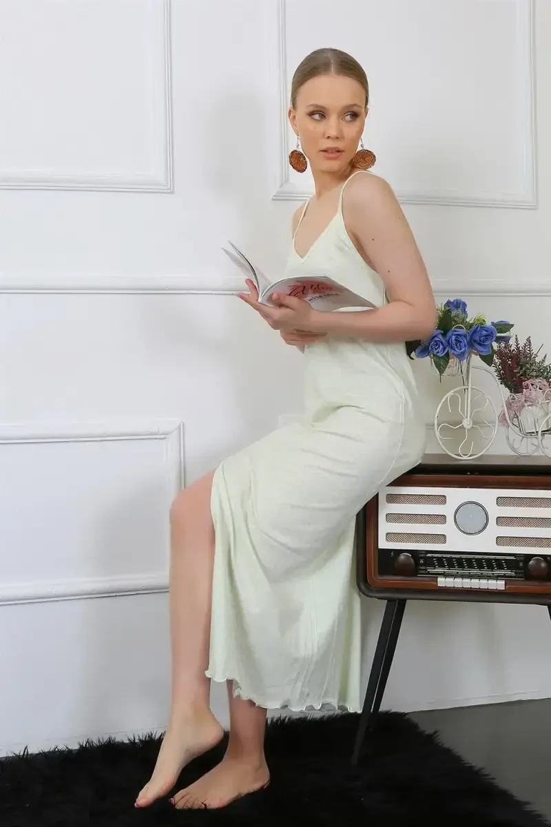 Experience comfort and elegance with the Akbeniz Women's Spaghetti Strap Long Nightgown 822. This elegant nightgown offers an uninterrupted sleep experience all night long with its soft texture and comfortable cut. The thin spaghetti straps add a feminine touch, while the long skirt length allows for comfortable movement. The cotton fabric of the nightgown allows your skin to breathe, preventing sweating and giving you a feeling of freshness throughout the day. Whether you are relaxing at home or taking it with you on your travels, the Akbeniz nightgown always prioritizes your comfort. Akbeniz Women's Spaghetti Strap Long Nightgown stands out not only with its comfort but also with its elegance. Thanks to its modern design and quality workmanship, it is a must-have piece in every woman's wardrobe. The simple and elegant appearance of the nightgown adapts to every style. Whether you use it alone or wear it inside your robe, you will always feel special. Akbeniz continues to offer products made with the highest quality materials, prioritizing women's comfort and elegance. This special nightgown can accompany you not only in daily use but also on your special days. It is a meaningful option that you can gift to your loved ones on special occasions such as birthdays, Valentine's Day or anniversaries. You can make your loved ones happy with Akbeniz quality and elegance. Moreover, with the advantage of shipping within 24 hours, your order will be at your door as soon as possible. By taking the M size on the mannequin as a reference, you can choose the one that suits your body best and enjoy the comfort. With Akbeniz, your nights will now be much more comfortable and stylish. This special nightgown, which will be an indispensable part of your wardrobe, aims to win the appreciation of every woman by offering comfort and elegance together. Order now and experience Akbeniz quality!
