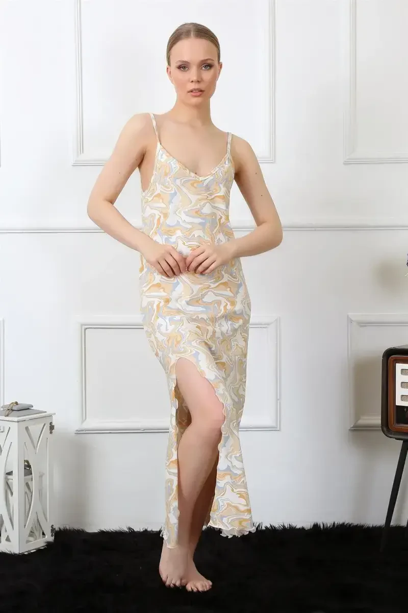 Capture the perfect harmony of comfort and elegance with the Akbeniz Women's Spaghetti Strap Long Nightgown 825. This nightgown is made from a blend of 95% cotton and 5% lycra. Thanks to this special fabric combination, it offers a soft touch to your skin while its flexible structure does not restrict your freedom of movement. The spaghetti strap design adds an elegant look to the nightgown, while its long cut ensures a comfortable sleep experience. Produced with Akbeniz quality, this nightgown is an ideal choice for both daily use and special moments. The cotton texture of the nightgown helps your skin breathe and prevents sweating. The lycra content ensures that the nightgown retains its shape and is long-lasting. With its stylish and comfortable design, the Akbeniz Spaghetti Strap Long Nightgown will be an indispensable part of your wardrobe. Keep in mind that the model is wearing size M, so you can easily choose the most suitable size for you. By checking your own size on the table, you can achieve the perfect fit. Akbeniz continues to offer products made with the highest quality materials, prioritizing the comfort and elegance of women. This nightgown is a great option to consider both for yourself and as a gift for your loved ones. Thanks to being shipped within 24 hours, your order will reach you as soon as possible. The light and useful structure of the nightgown makes it easy to carry with you on your travels. Always be comfortable and stylish with Akbeniz!